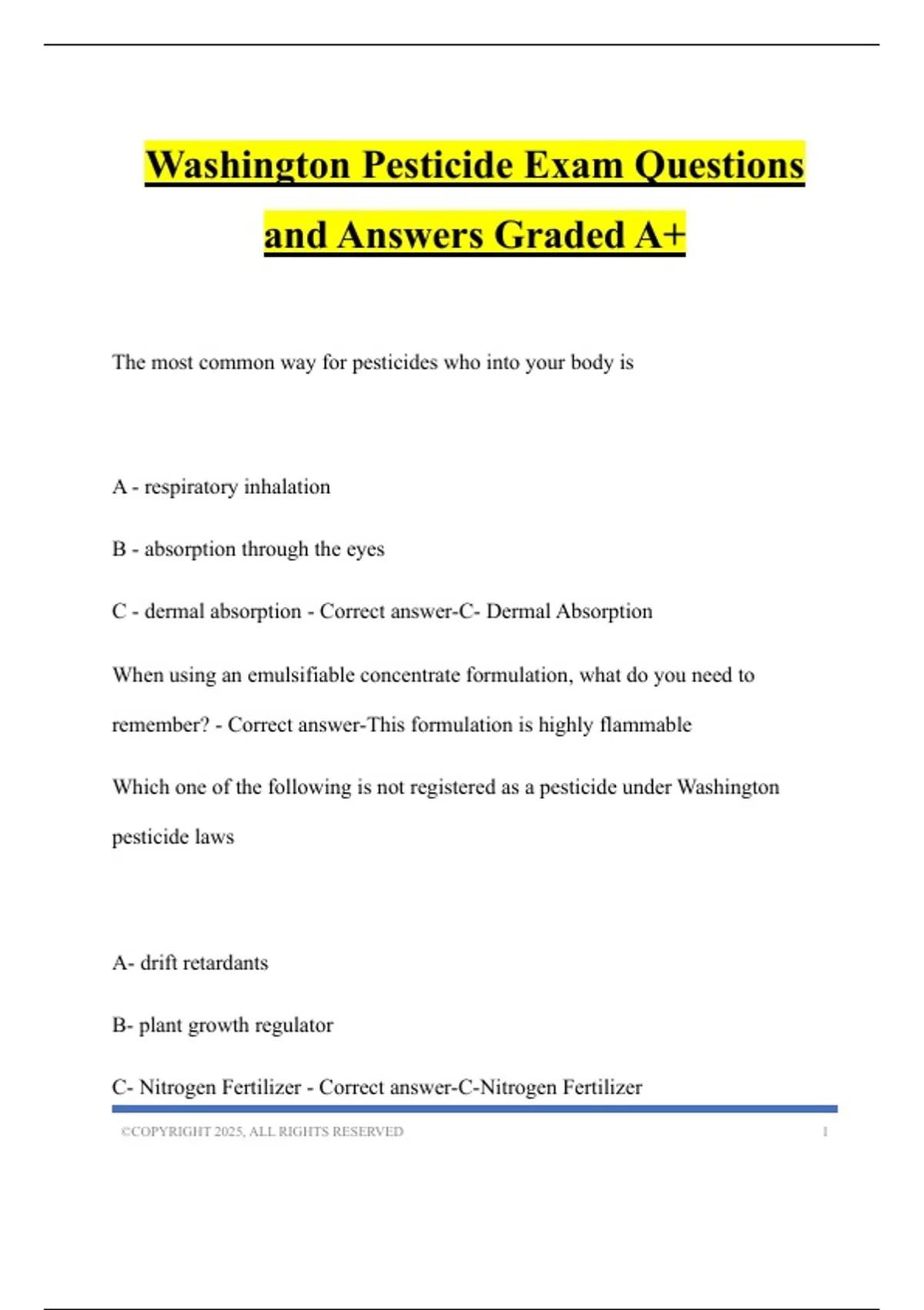 Washington Pesticide Exam Questions