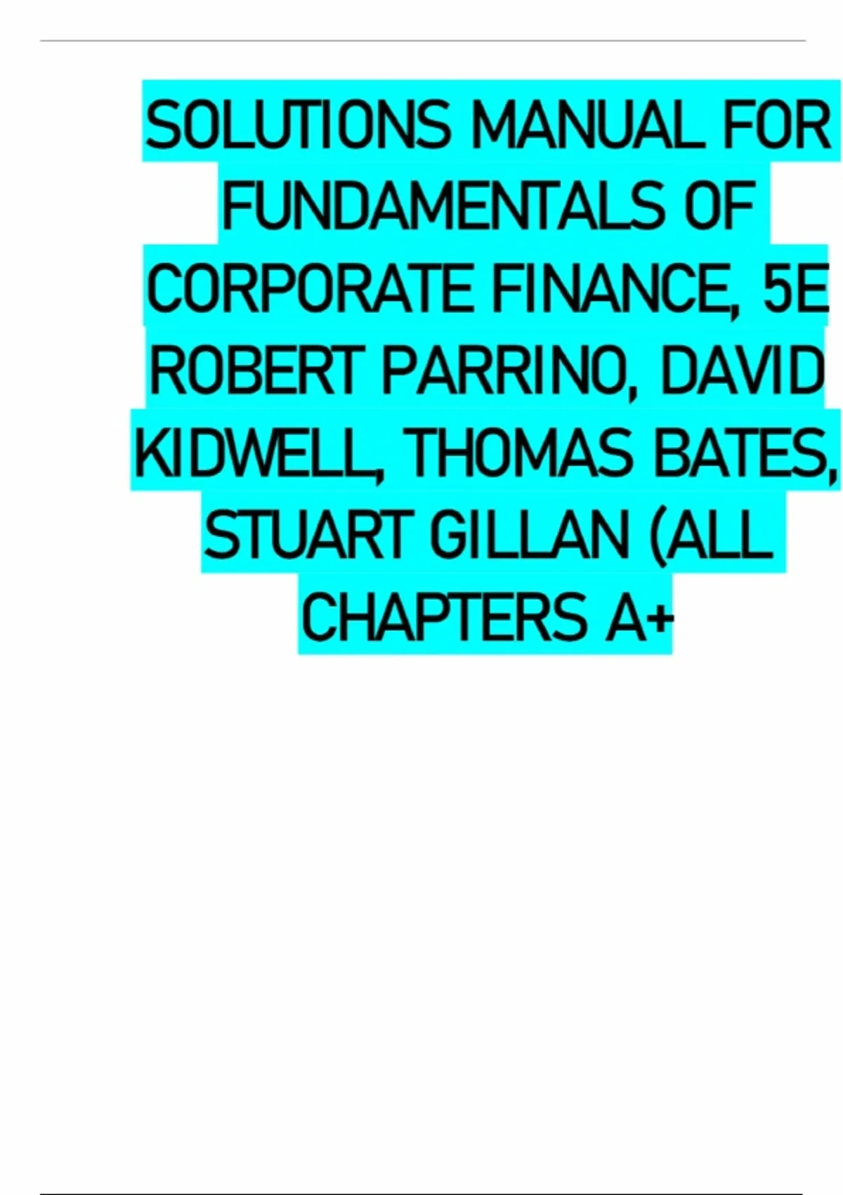 SOLUTIONS MANUAL FOR FUNDAMENTALS OF CORPORATE FINANCE, 6TH EDITION BY ROBERT PARRINO, DAVID KIDWELL, THOMAS BATES, STUART GILLAN