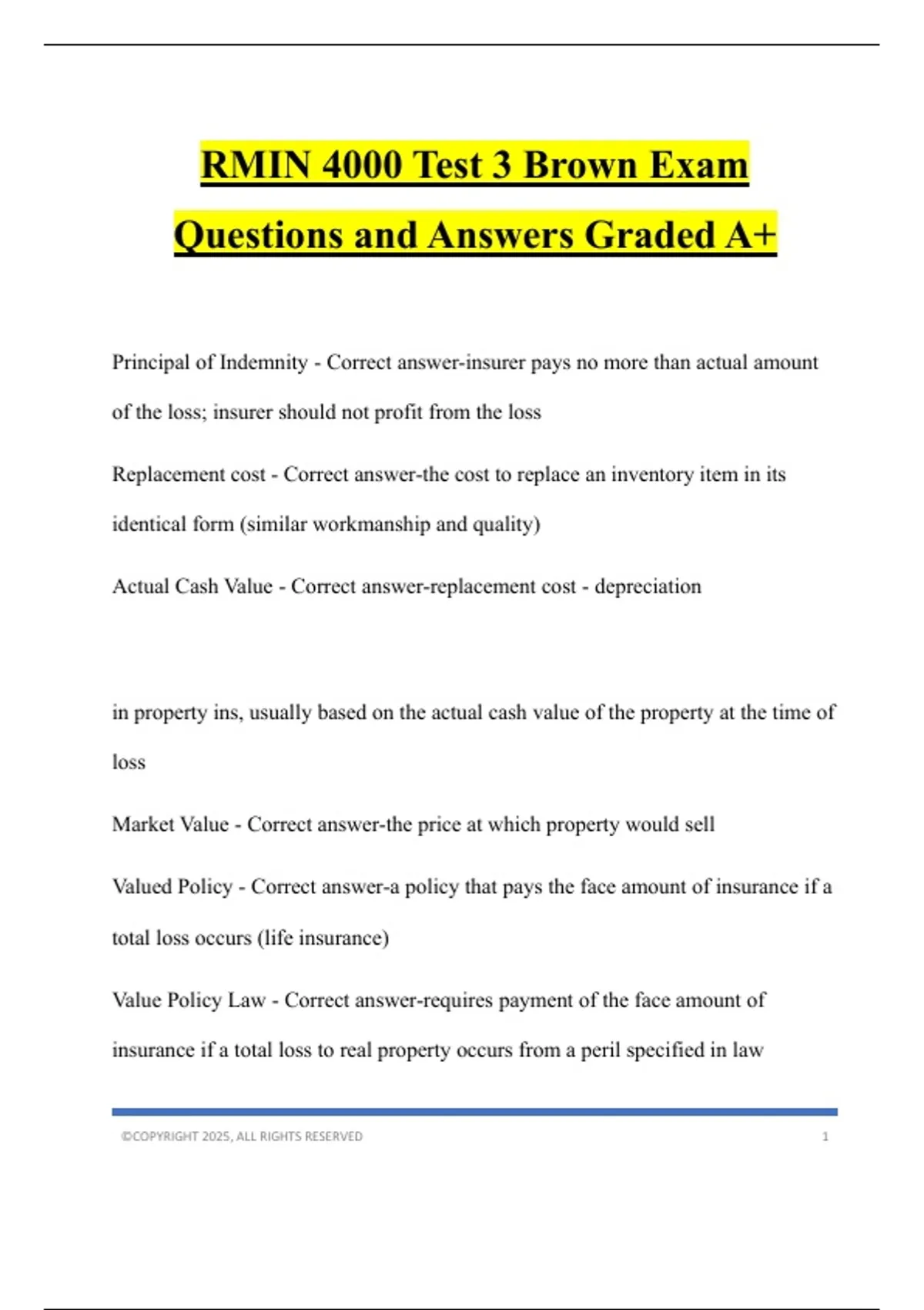 Principal of Indemnity - Correct answer-insurer pays no more than actual amount