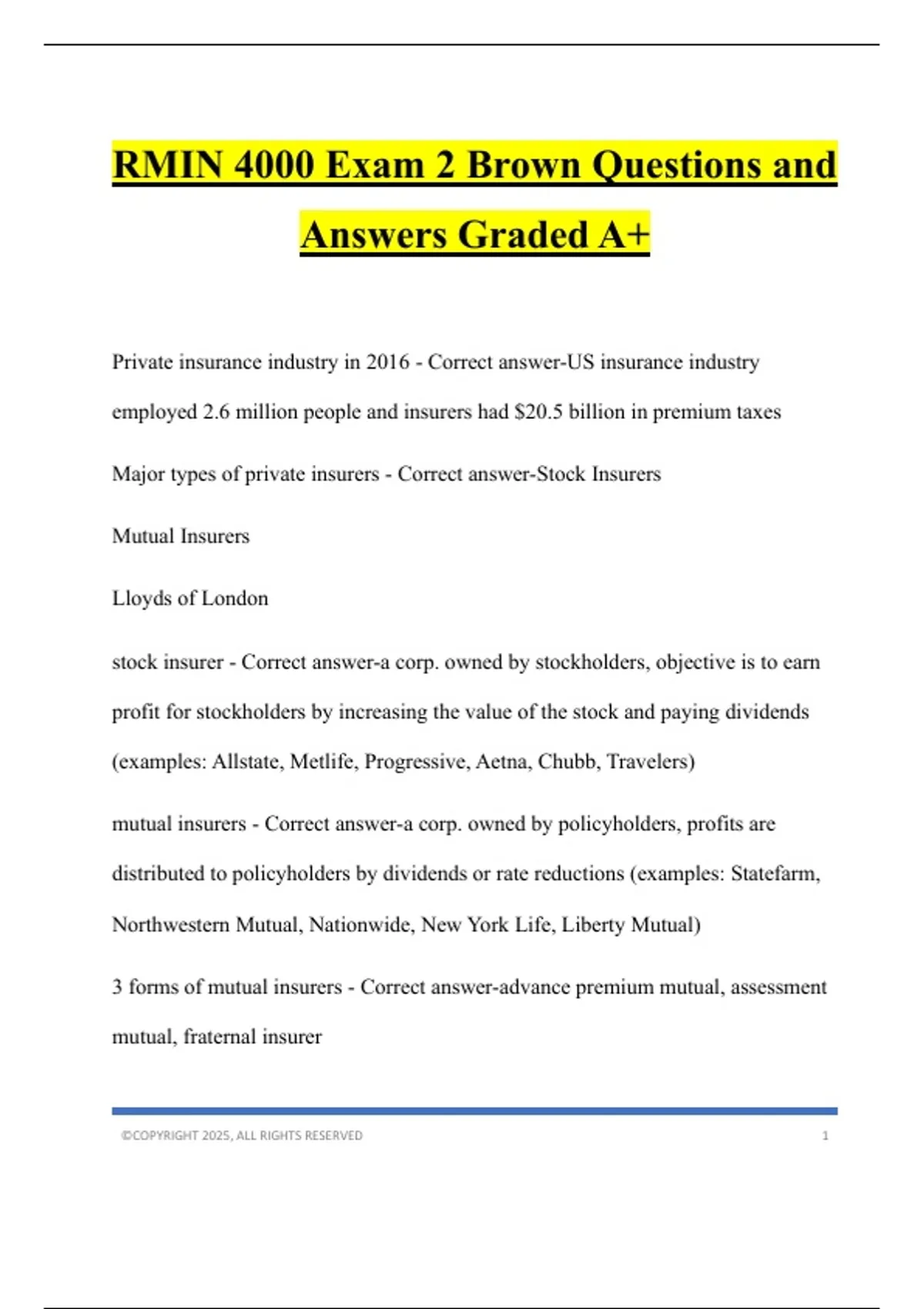 assessment mutual - Correct answer-insurer has right to assess policyholders an
