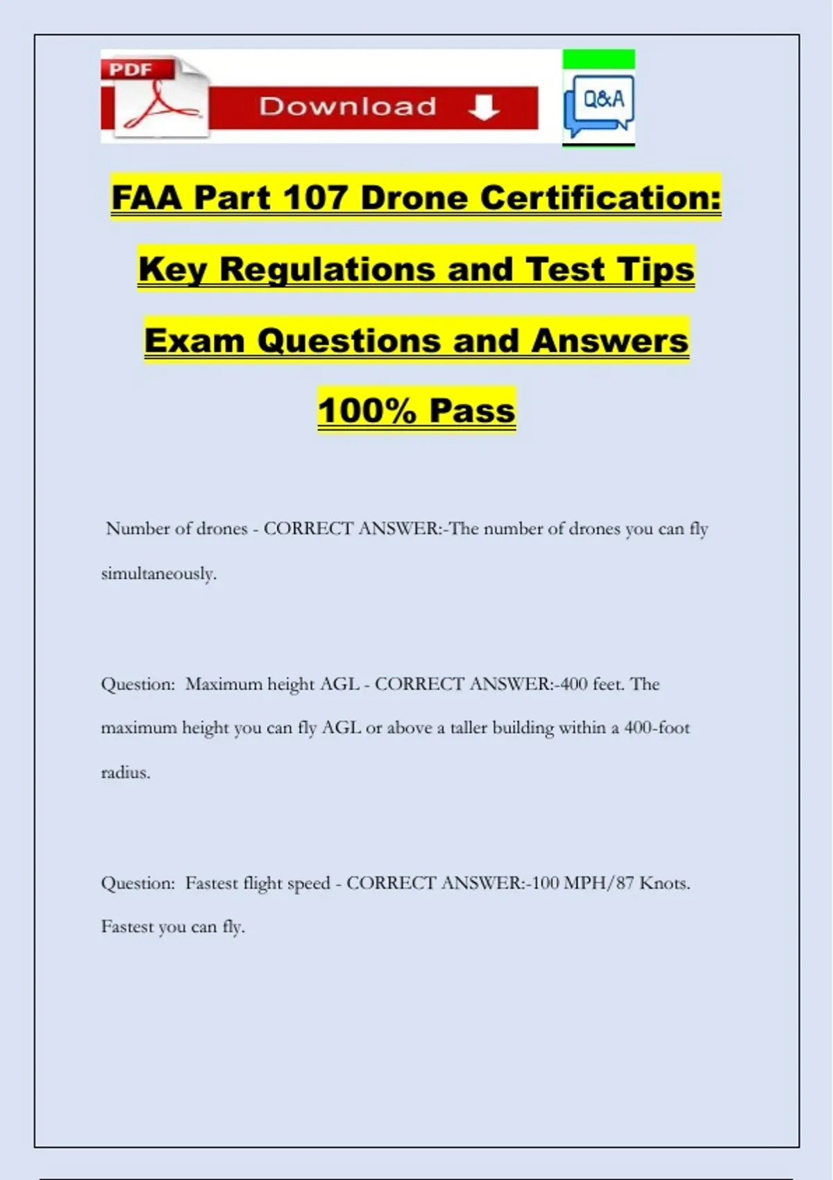 Question: Maximum height AGL - CORRECT ANSWER:-400 feet. The