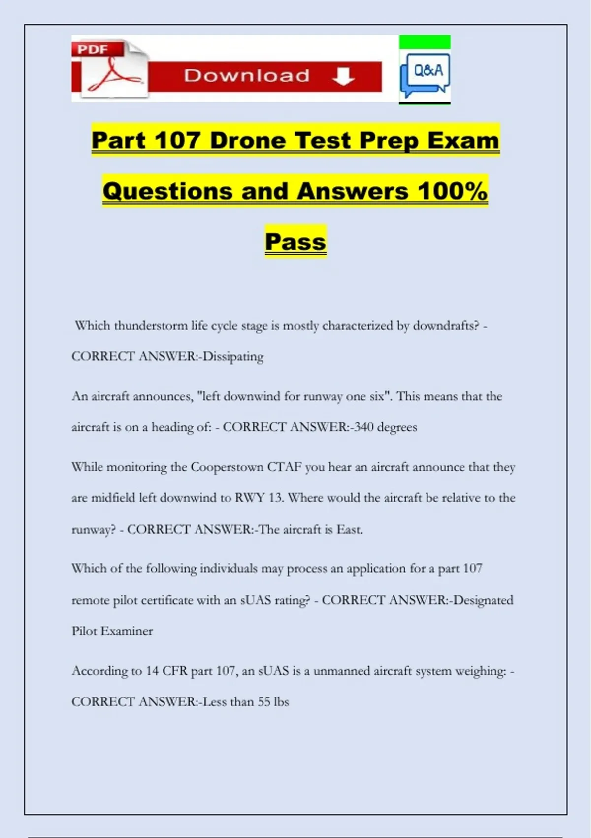 Part 107 Drone Test Prep Exam Questions and Answers 100% Pass