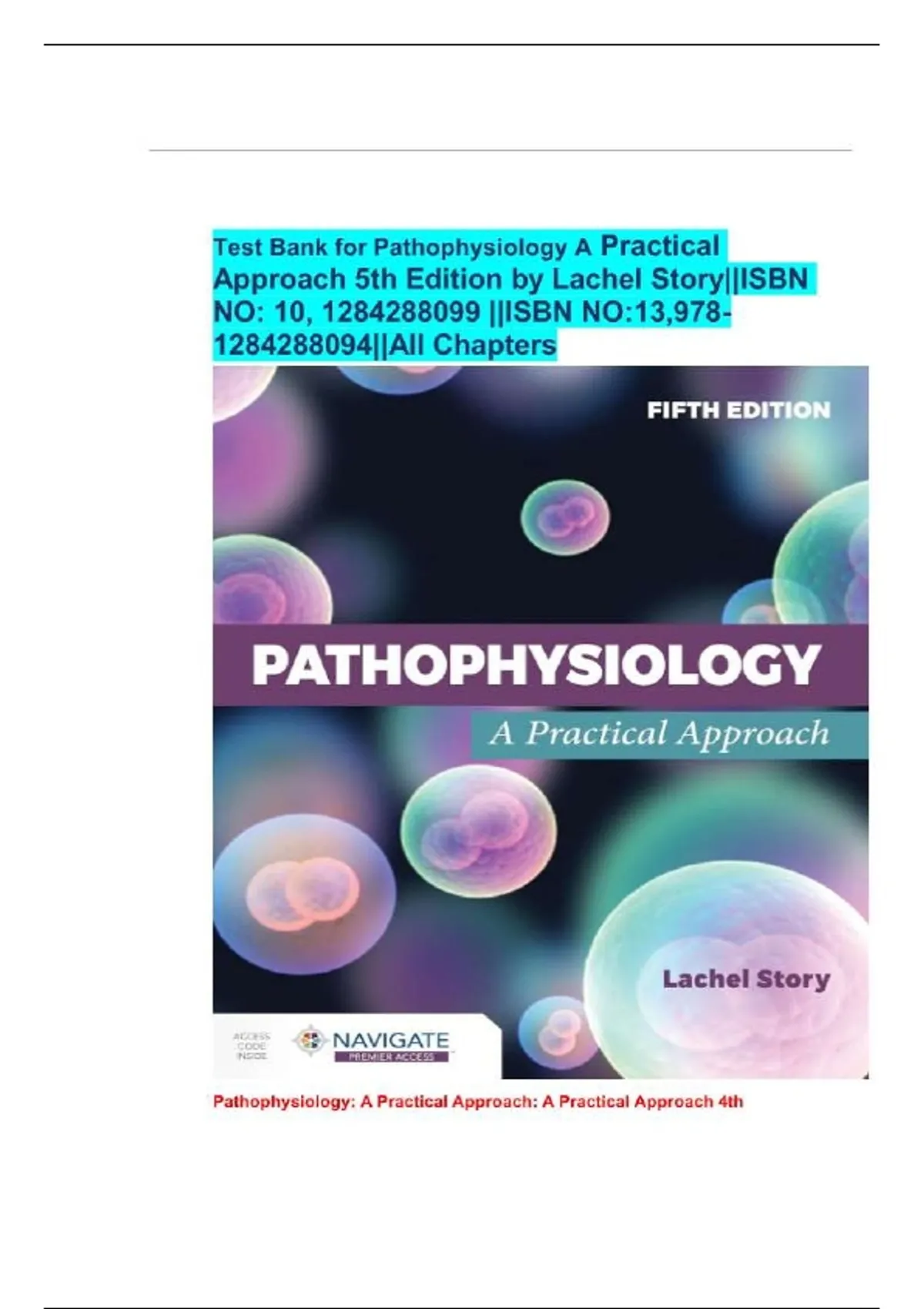 Test Bank For Pathophysiology: A Practical Approach 5th Edition by Lachel Story||ISBN NO:10,1284288099||ISBN NO:13,978-1284288094||All Chapters||Complete Guide A+