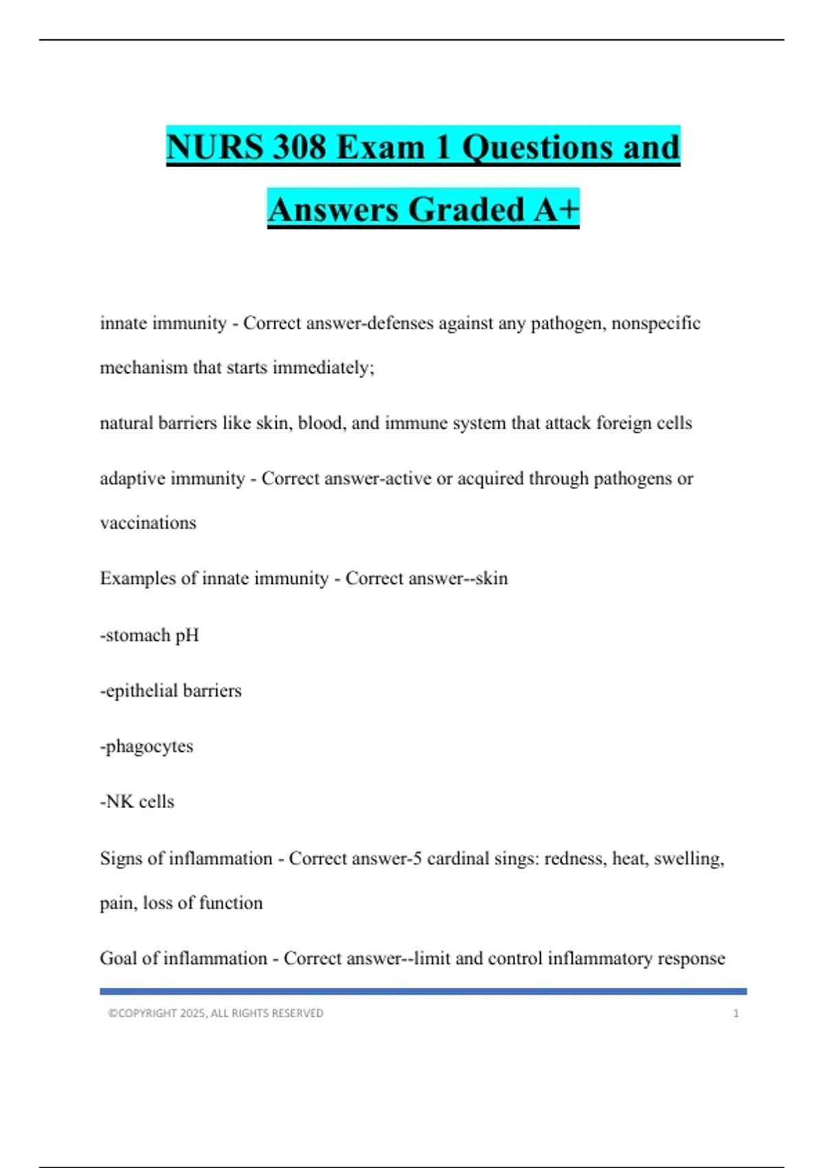 NURS 308 Exam 1 Questions and Answers Graded A+