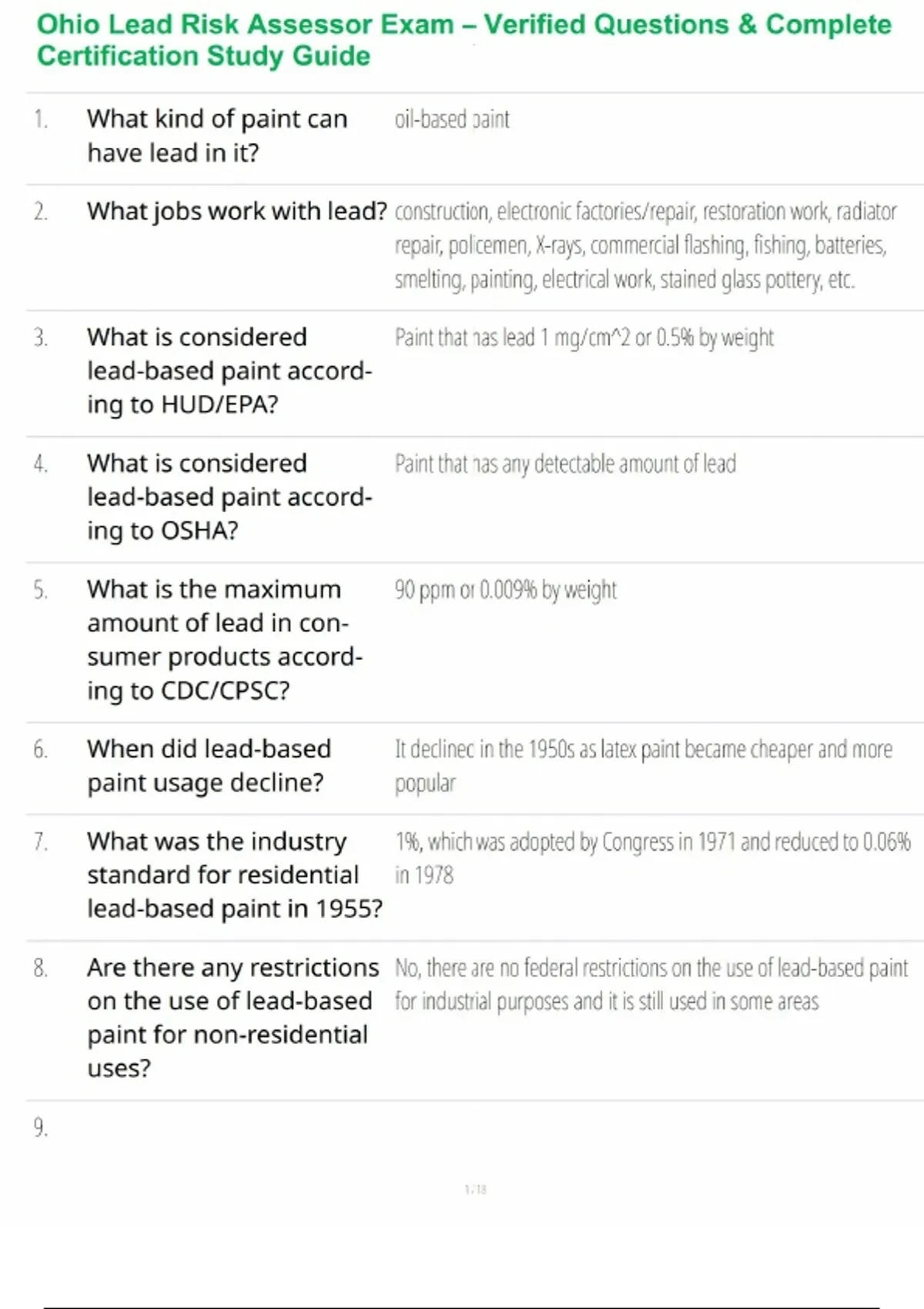 Ohio Lead Risk Assessor Exam – Verified Questions & Complete Certification Study Guide