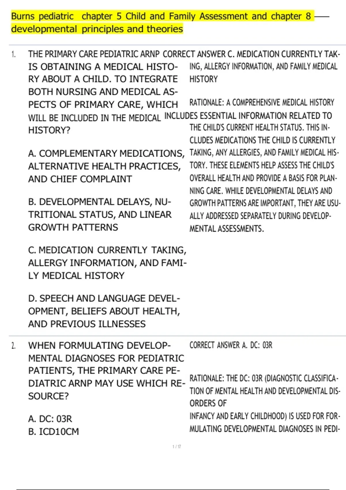 1. THE PRIMARY CARE PEDIATRIC ARNP CORRECT ANSWER C. MEDICATION CURRENTLY TAK-