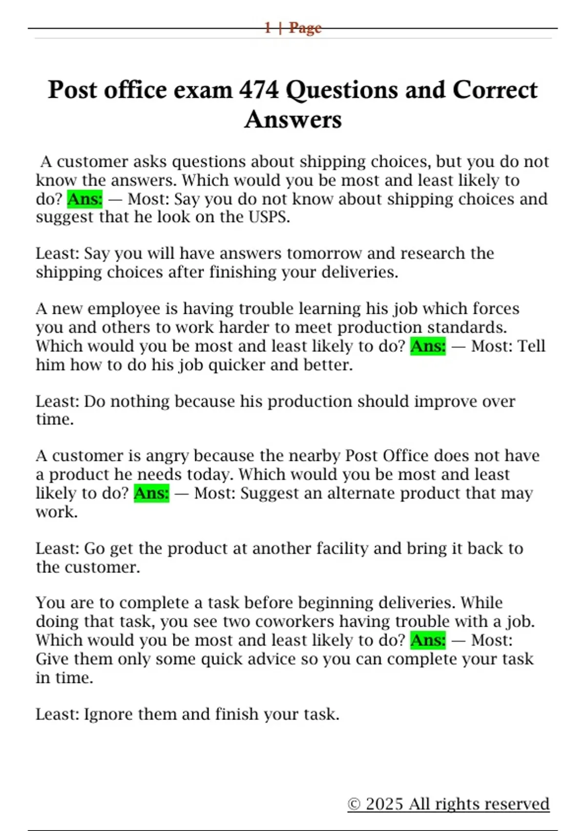 Post office exam 474 Questions and Correct AnswersPost office exam 474 Questions and Correct Answers