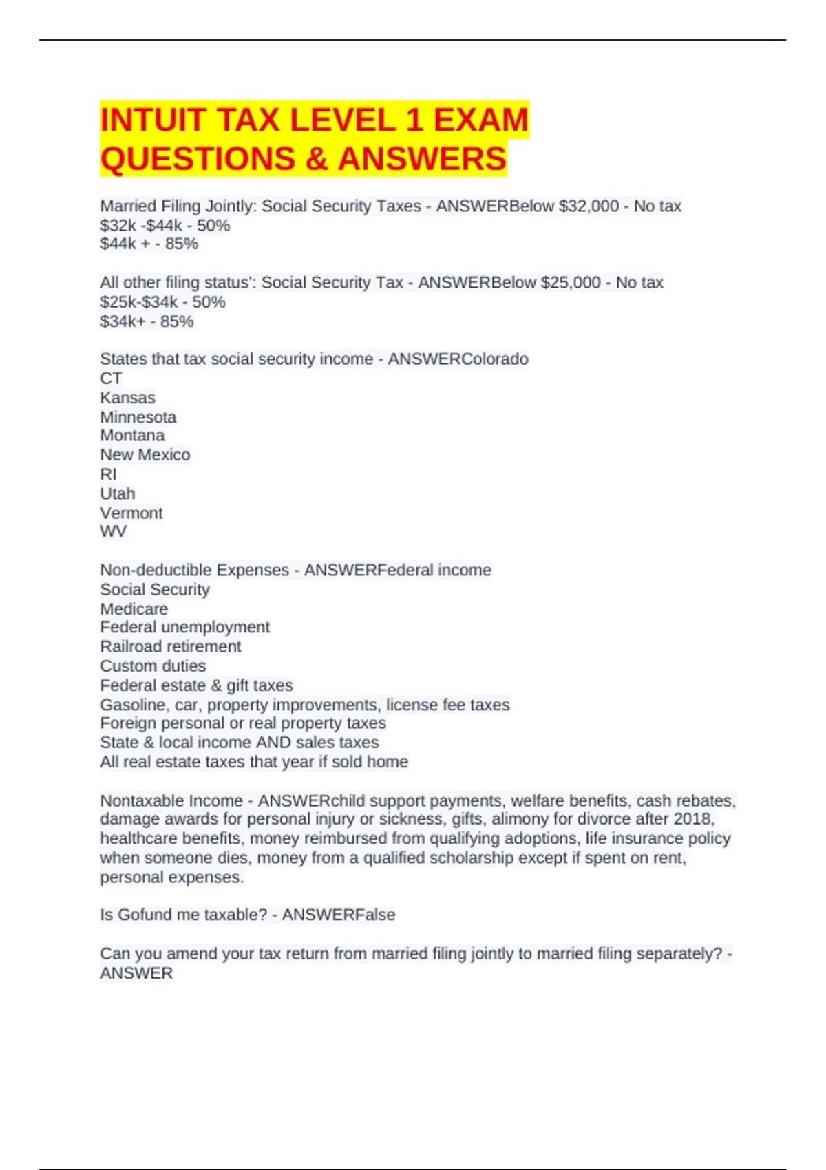 INTUIT TAX LEVEL 1 EXAM QUESTIONS & ANSWERS