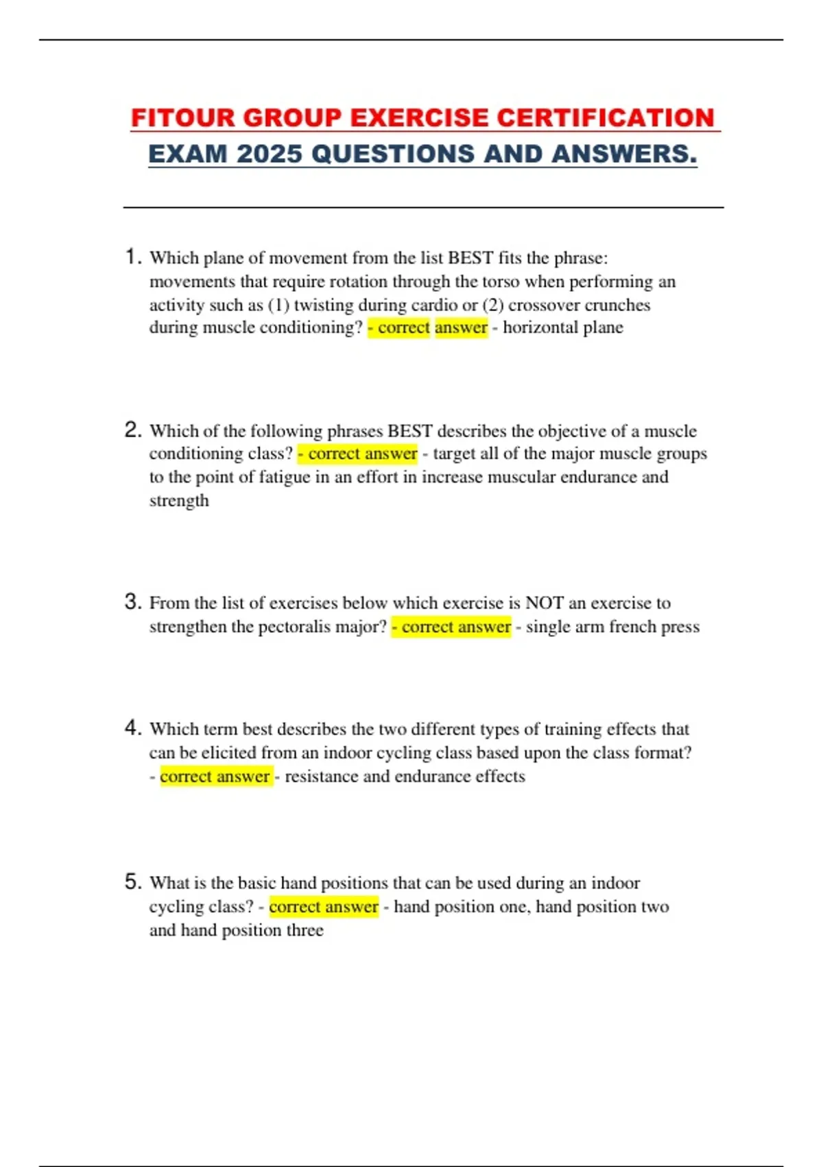 conditioning class? - correct answer - target all of the major muscle groups