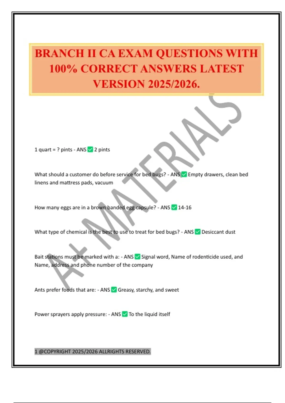 BRANCH II CA EXAM QUESTIONS WITH 100% CORRECT ANSWERS LATEST VERSION 2025/2026