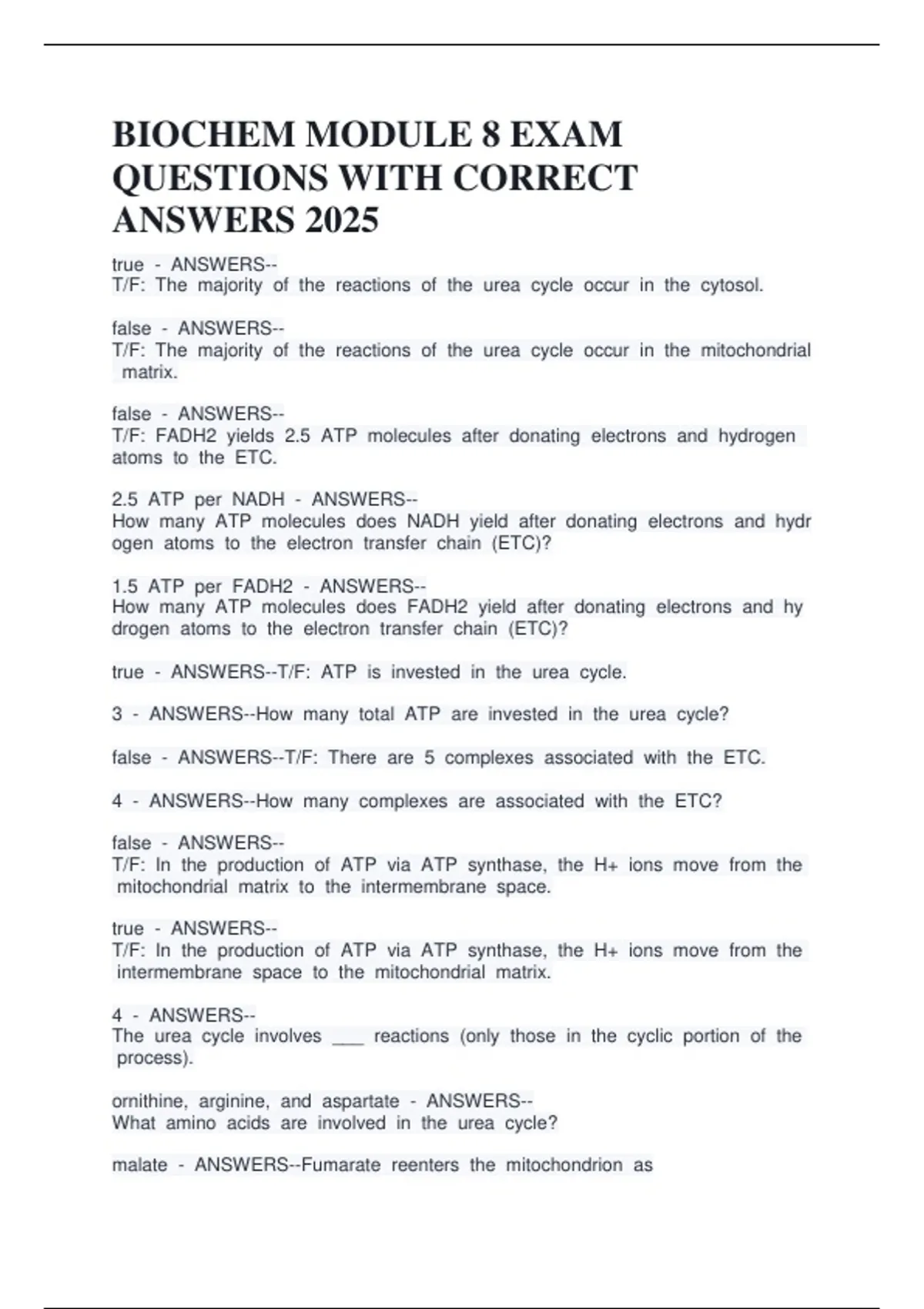 BIOCHEM MODULE 8 EXAM QUESTIONS WITH CORRECT ANSWERS 2025