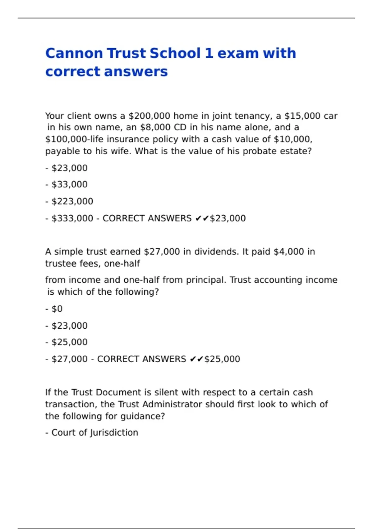 - $333,000 - CORRECT ANSWERS ✔✔$23,000