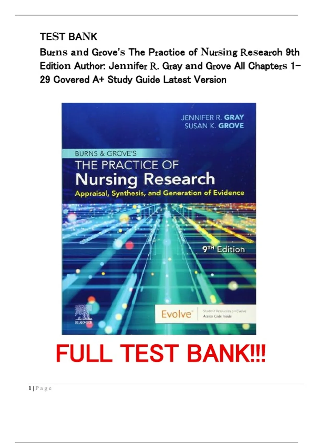Edition Author: Jennifer R. Gray and Grove All Chapters 1-