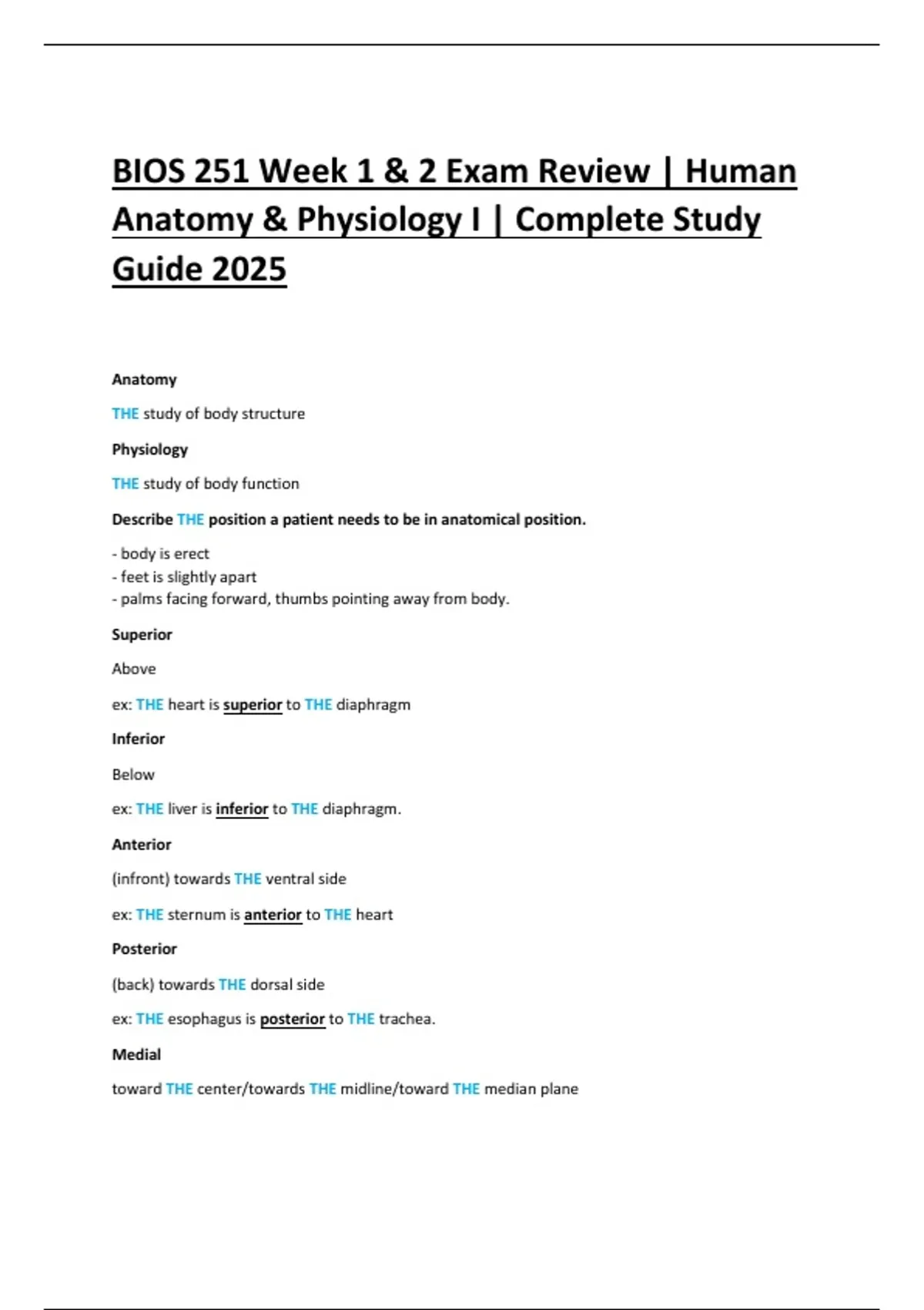 ex: THE liver is inferior to THE diaphragm.