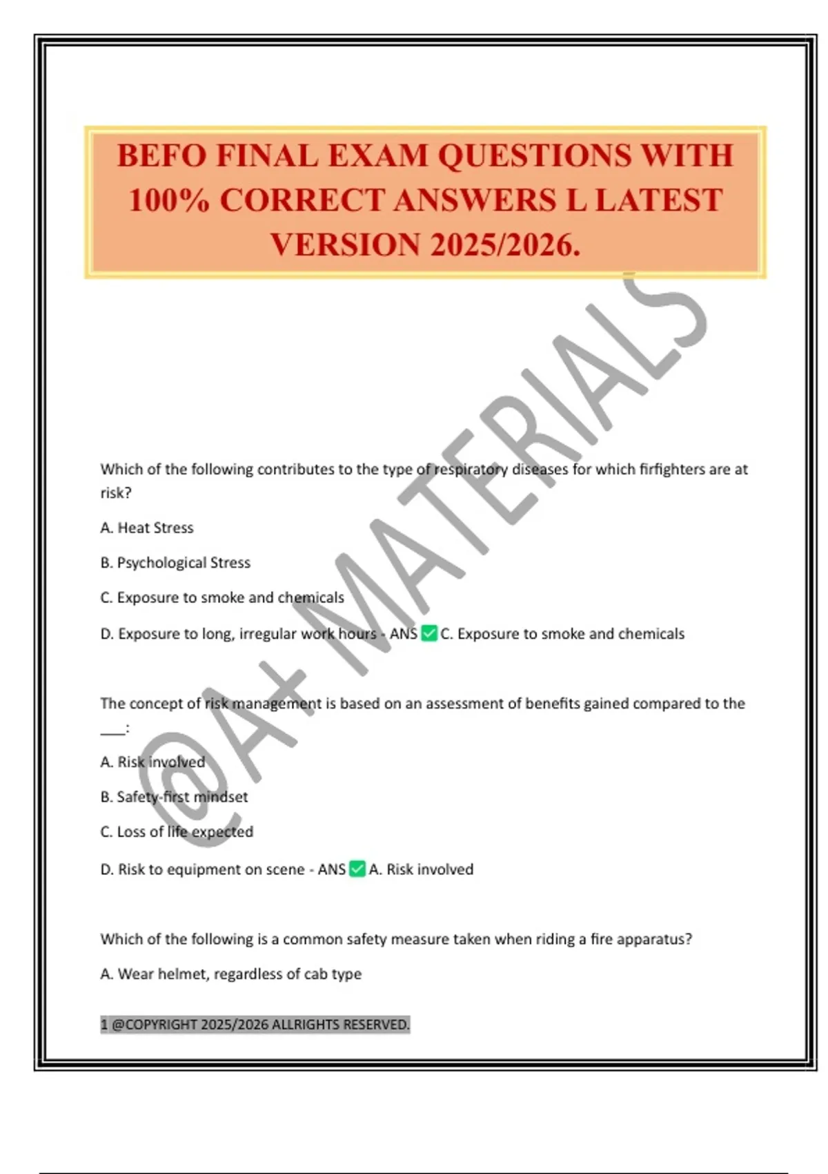 BEFO FINAL EXAM QUESTIONS WITH