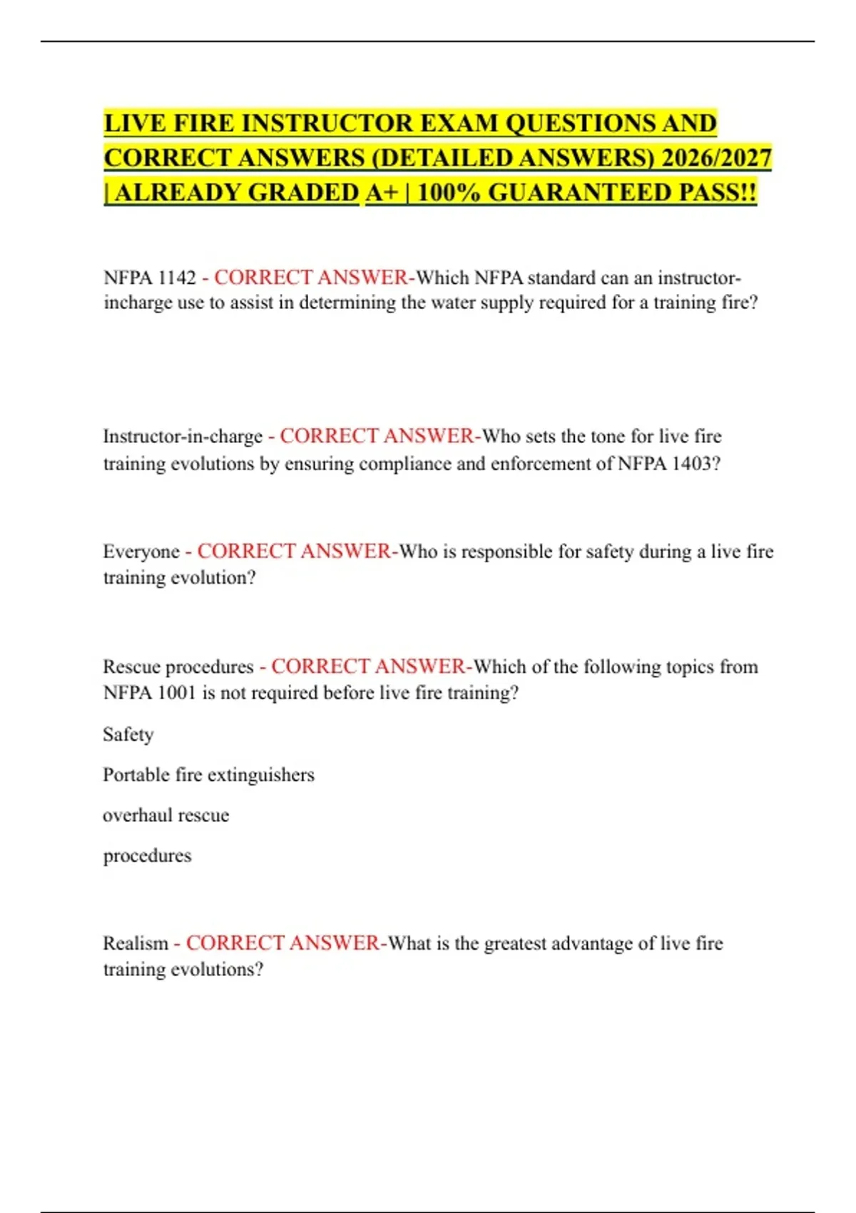NFPA 1403 - CORRECT ANSWER-NFPA standards pertains to Live Fire