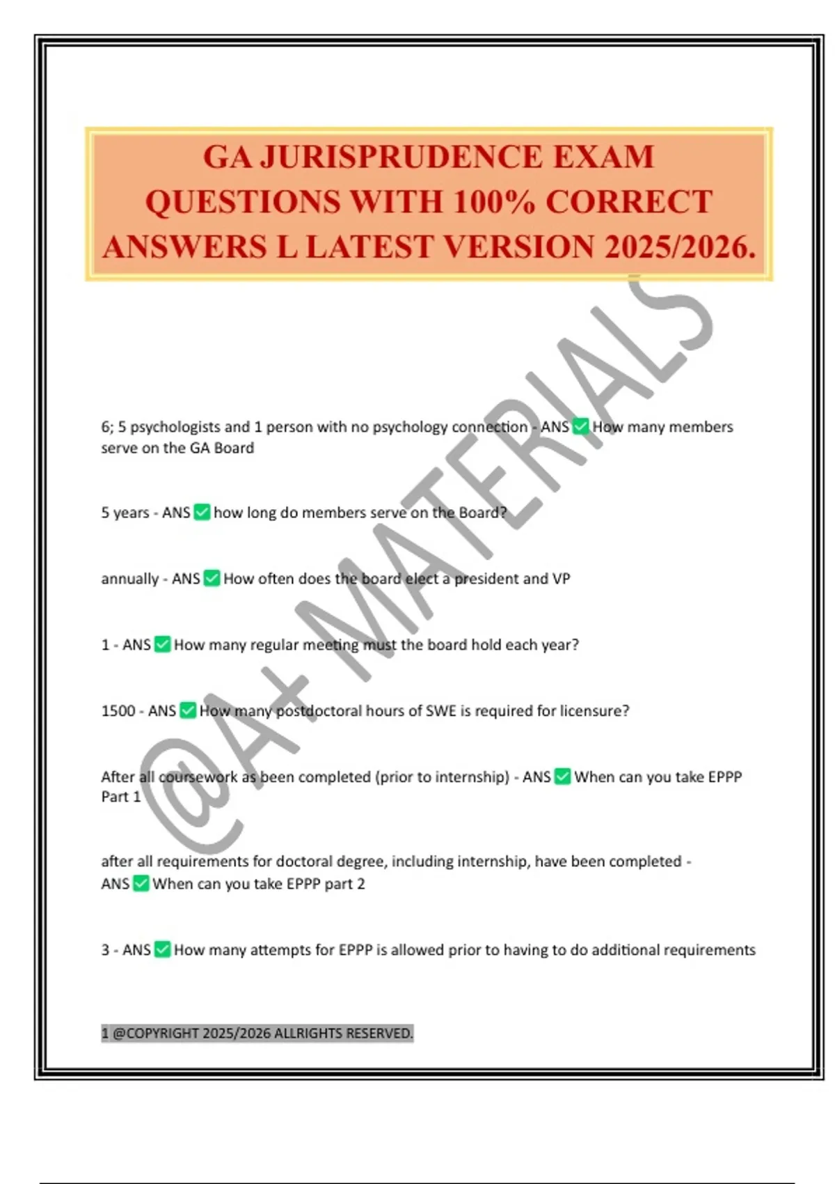 GA JURISPRUDENCE EXAM QUESTIONS WITH 100% CORRECT ANSWERS L LATEST VERSION 2025/2026.