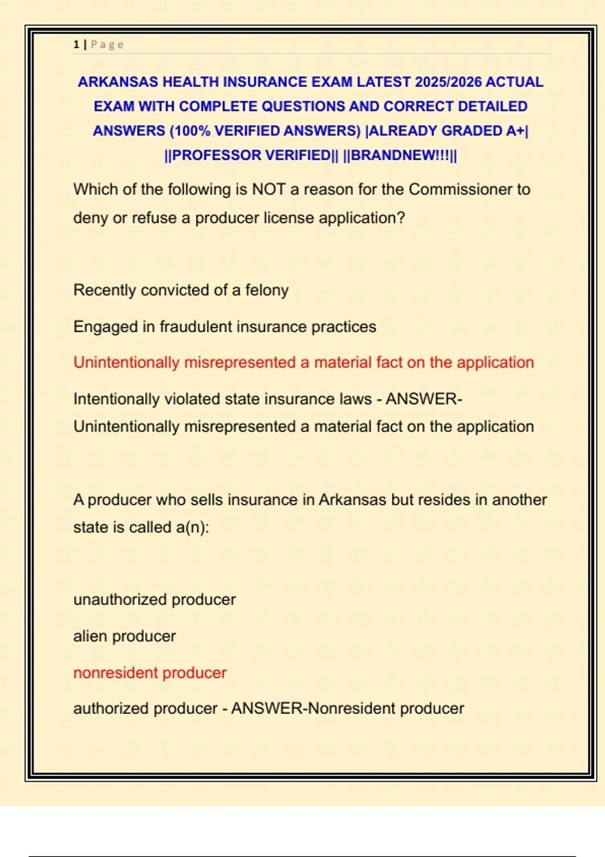 authorized producer - ANSWER-Nonresident producer