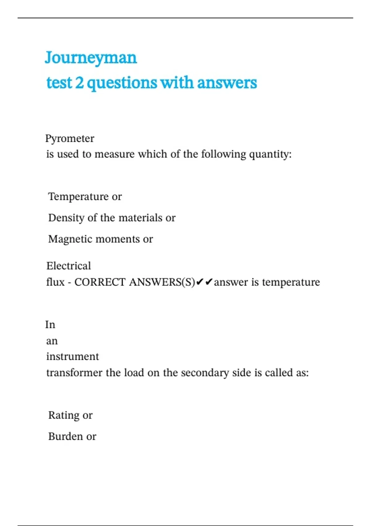 Journeyman test 2 questions with answers