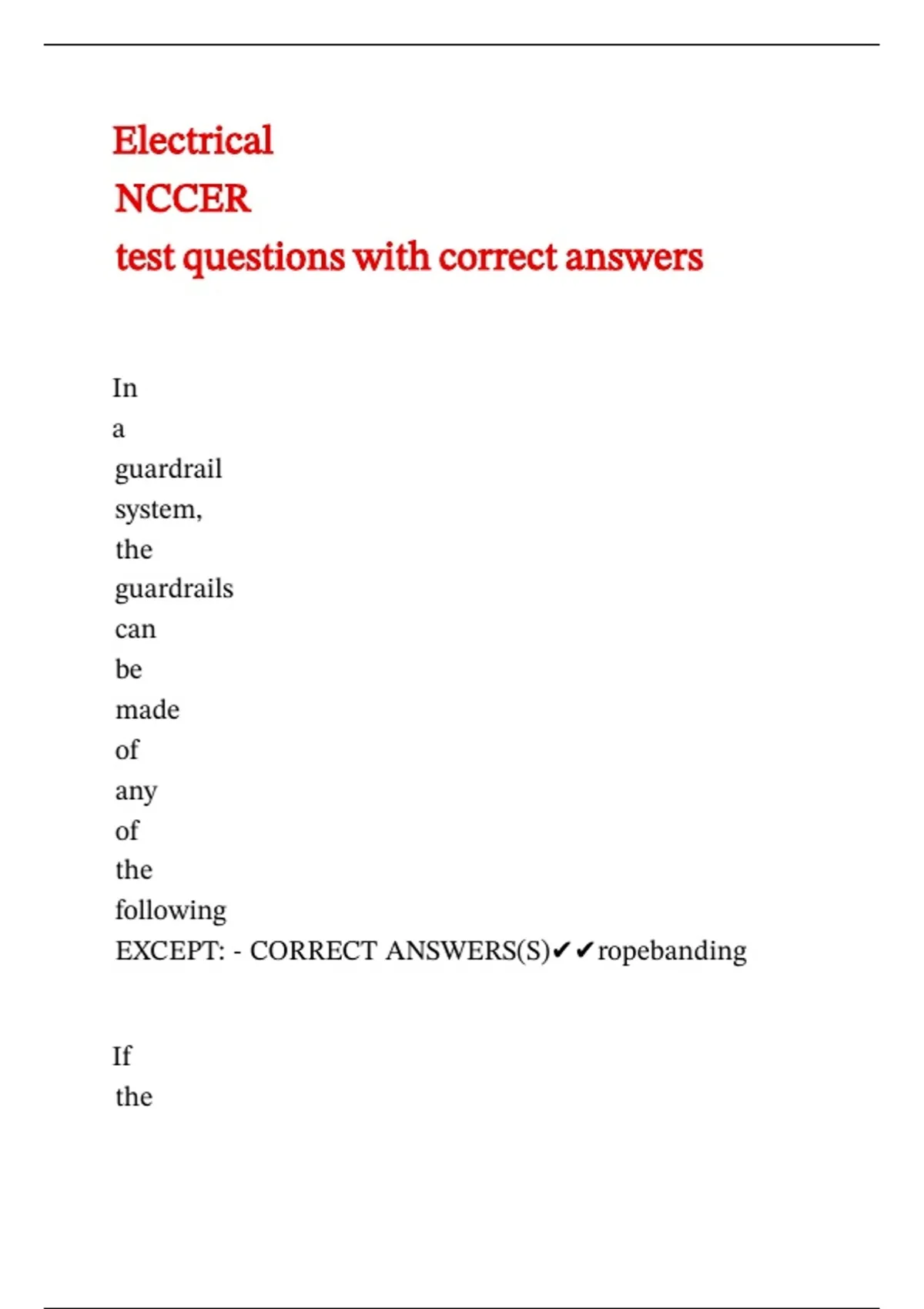 EXCEPT: - CORRECT ANSWERS(S)✔✔ropebanding