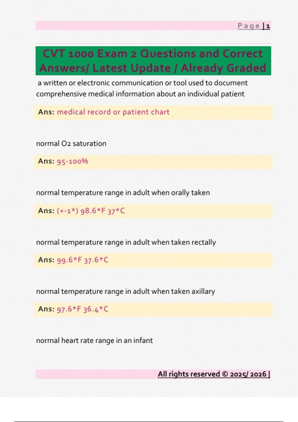 CVT 1000 Exam 2 Questions and Correct Answers/ Latest Update / Already Graded