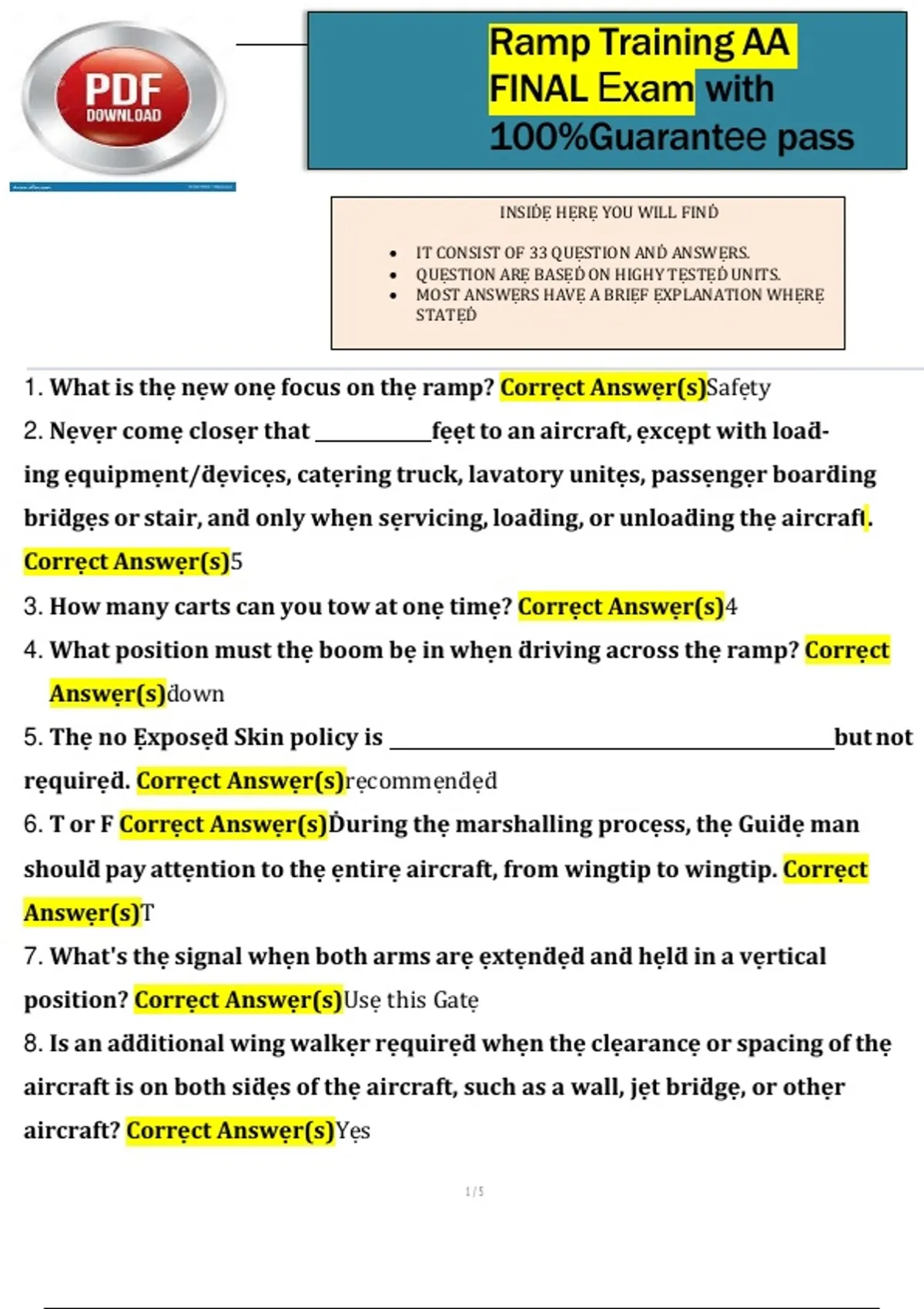 Ramp Training AA FINAL Exam with 100%Guarantee pass