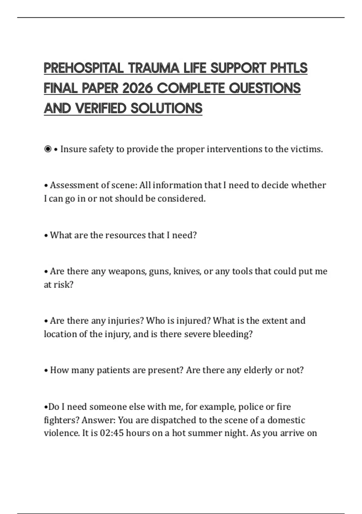 PREHOSPITAL TRAUMA LIFE SUPPORT PHTLS FINAL PAPER 2026 COMPLETE QUESTIONS AND VERIFIED SOLUTIONS