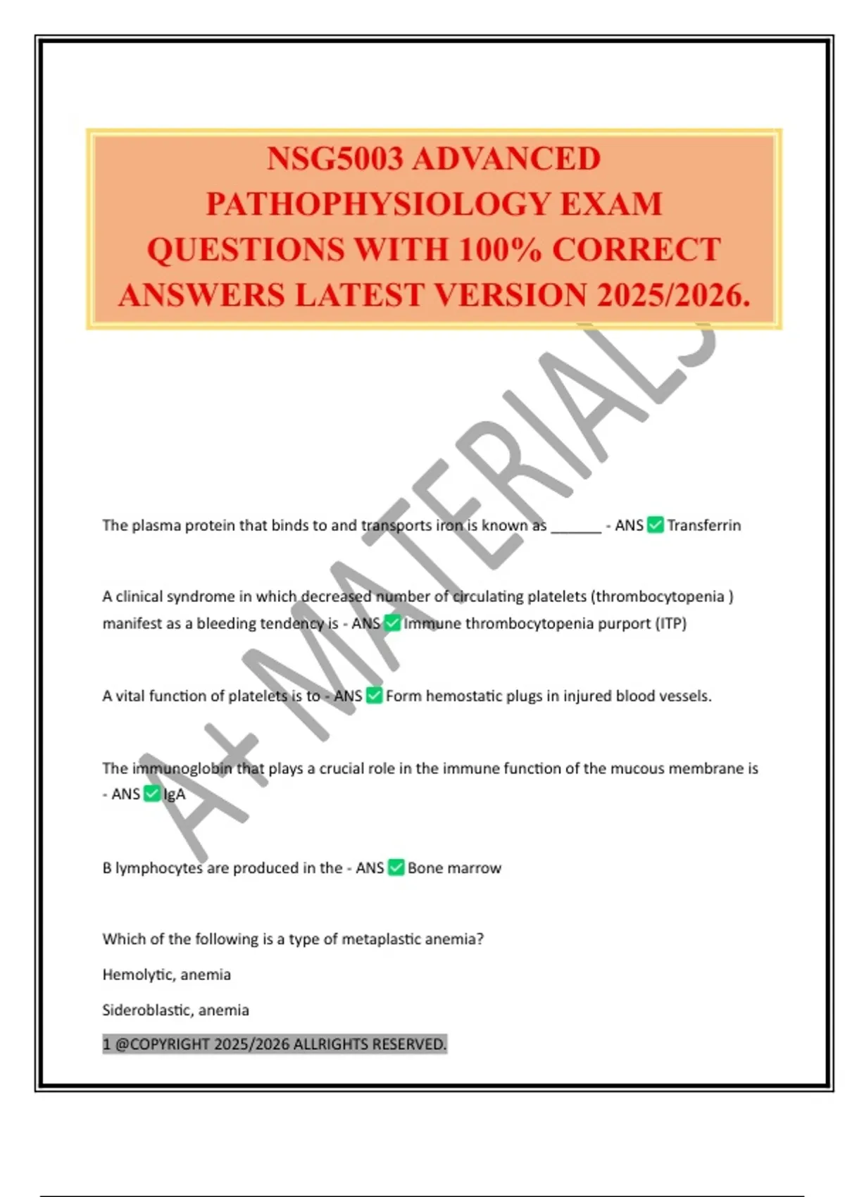 The plasma protein that binds to and transports iron is known as ______ - ANS Transferrin