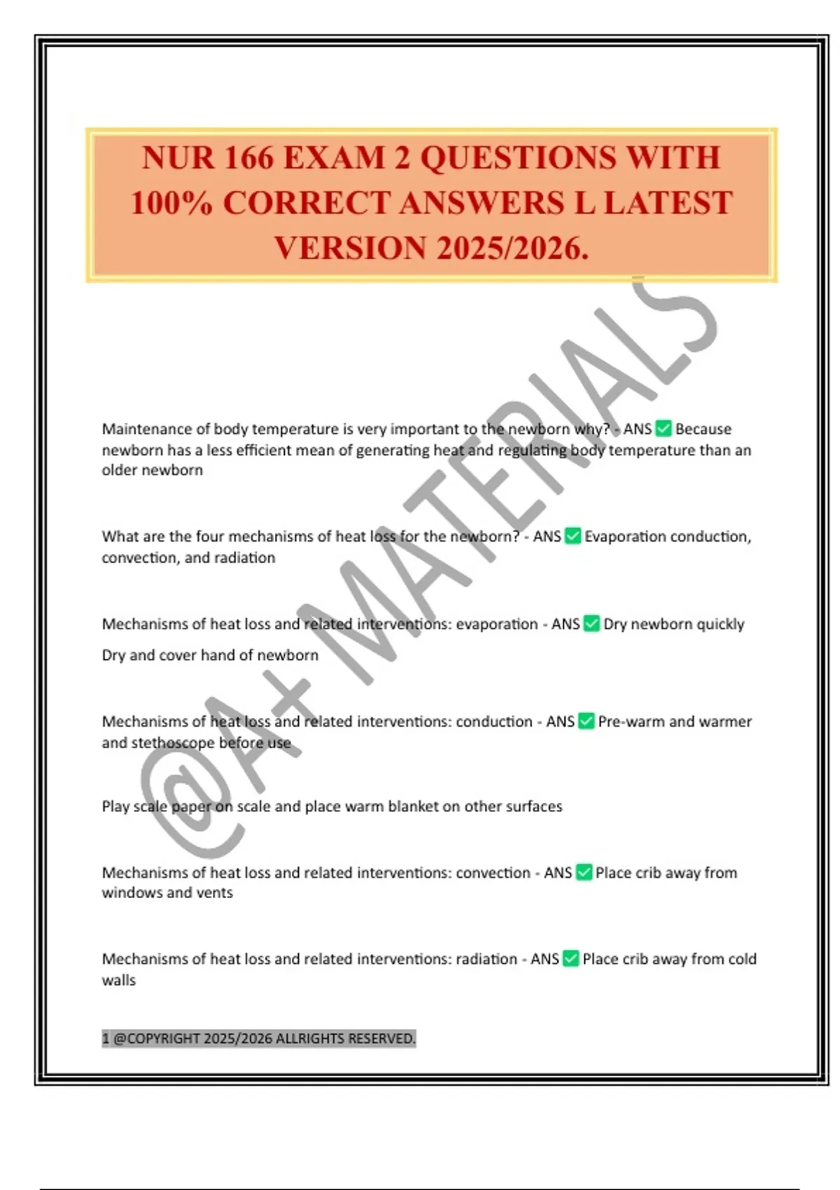 NUR 166 EXAM 2 QUESTIONS WITH 100% CORRECT ANSWERS L LATEST VERSION 2025/2026.