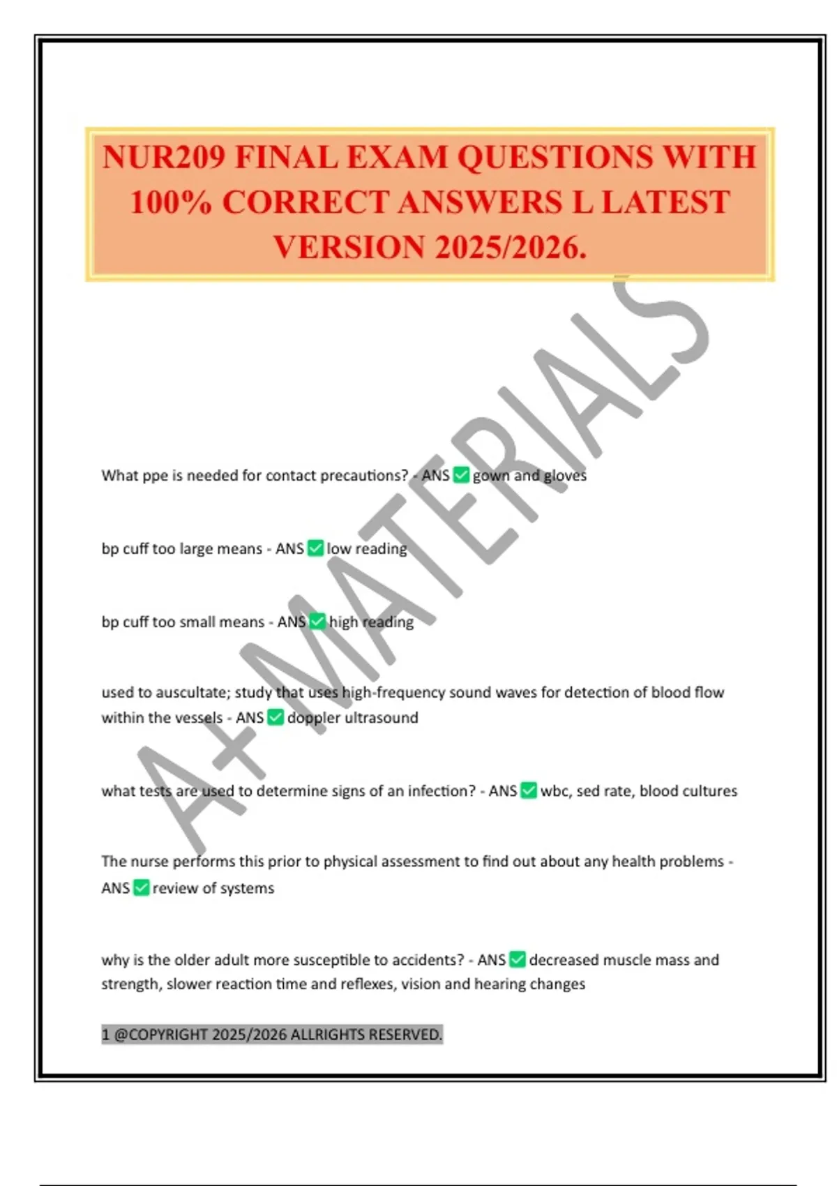 NUR209 FINAL EXAM QUESTIONS WITH 100% CORRECT ANSWERS L LATEST VERSION 2025/2026.