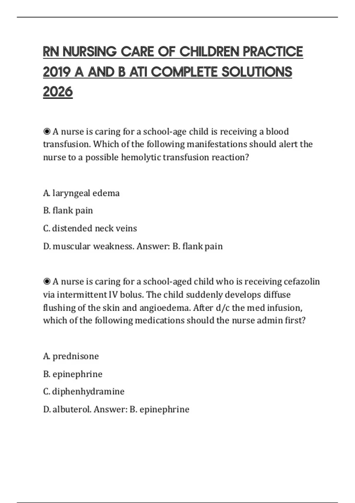 D. albuterol. Answer: B. epinephrine