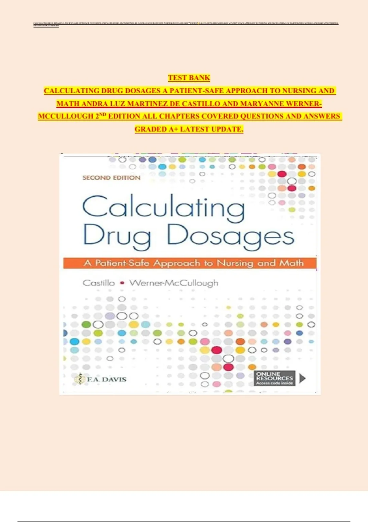 ,CALCULATING DRUG DOSAGES A PATIENT-SAFE APPROACH TO NURSING AND MATH ANDRA LUZ MARTINEZ DE CASTILLO AND MARYANNE WERNER-MCCULLOUGH 2ND EDITION CALCULATING DRUG DOSAGES A PATIENT-SAFE APPROACH TO NURSING AND MATH ANDRA LUZ MARTINEZ DE CASTILLO AND MARYANNE WERNER-