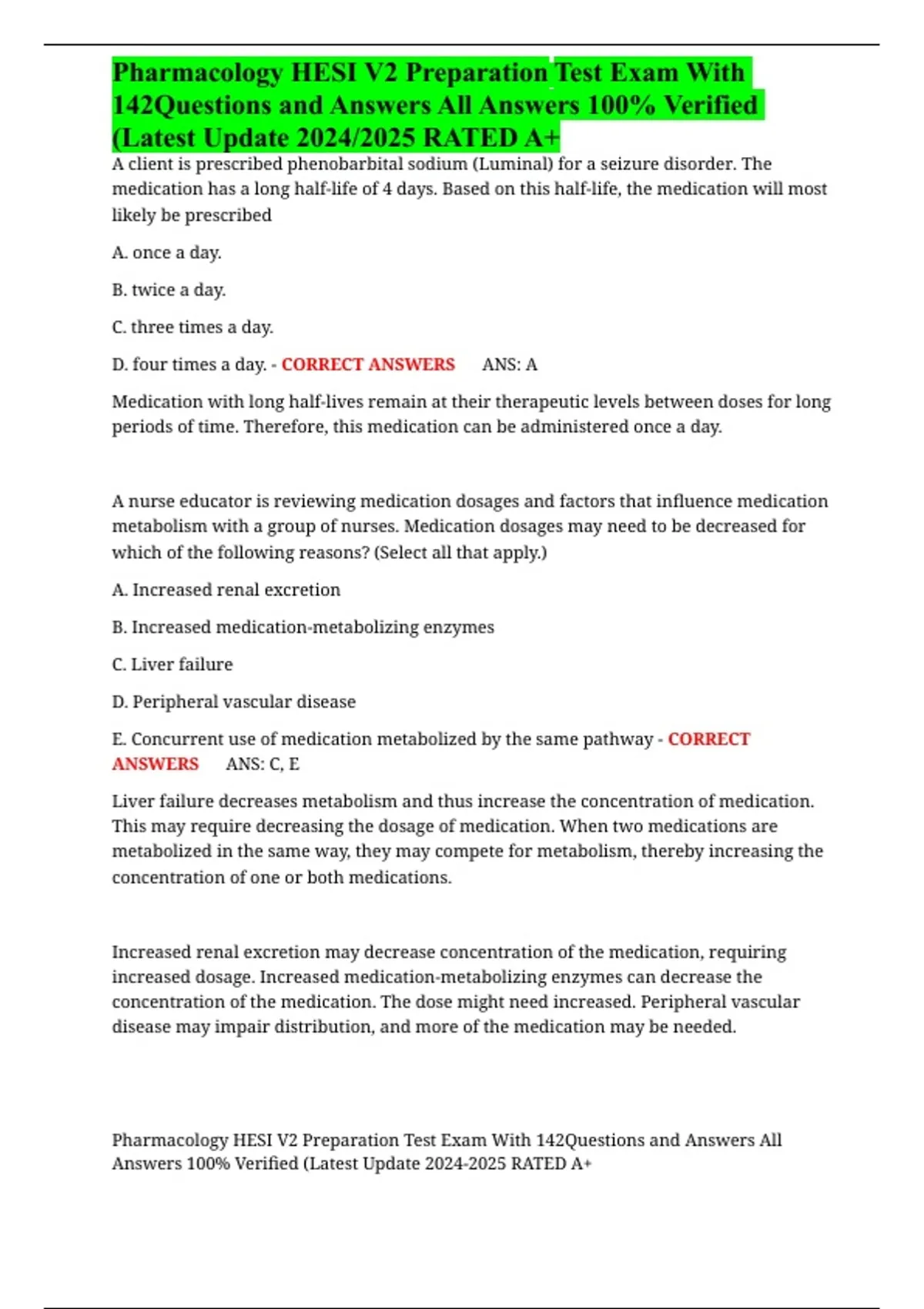 ,Pharmacology HESI V2 Preparation Test Exam With