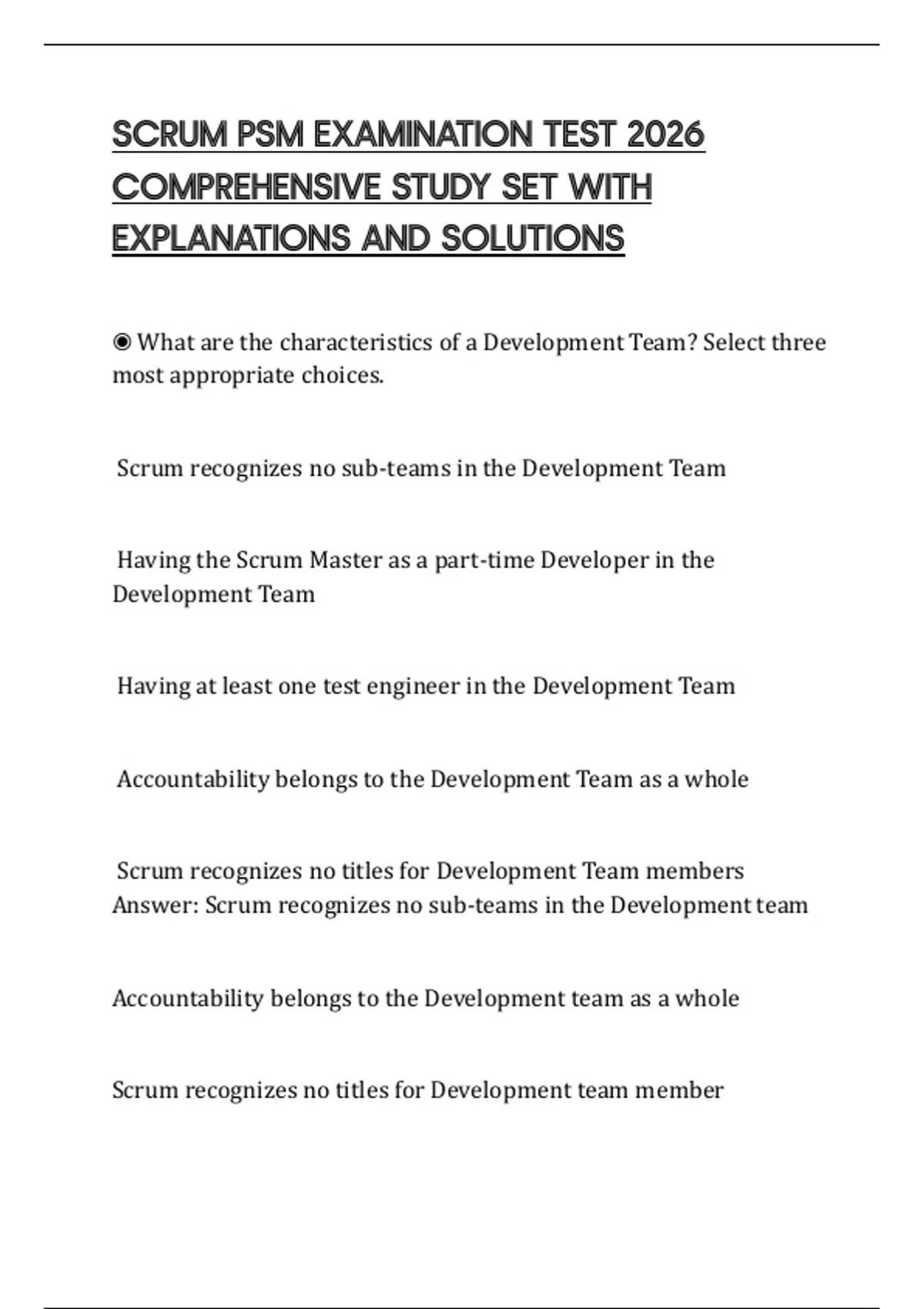 SCRUM PSM EXAMINATION TEST 2026 COMPREHENSIVE STUDY SET WITH EXPLANATIONS AND SOLUTIONS