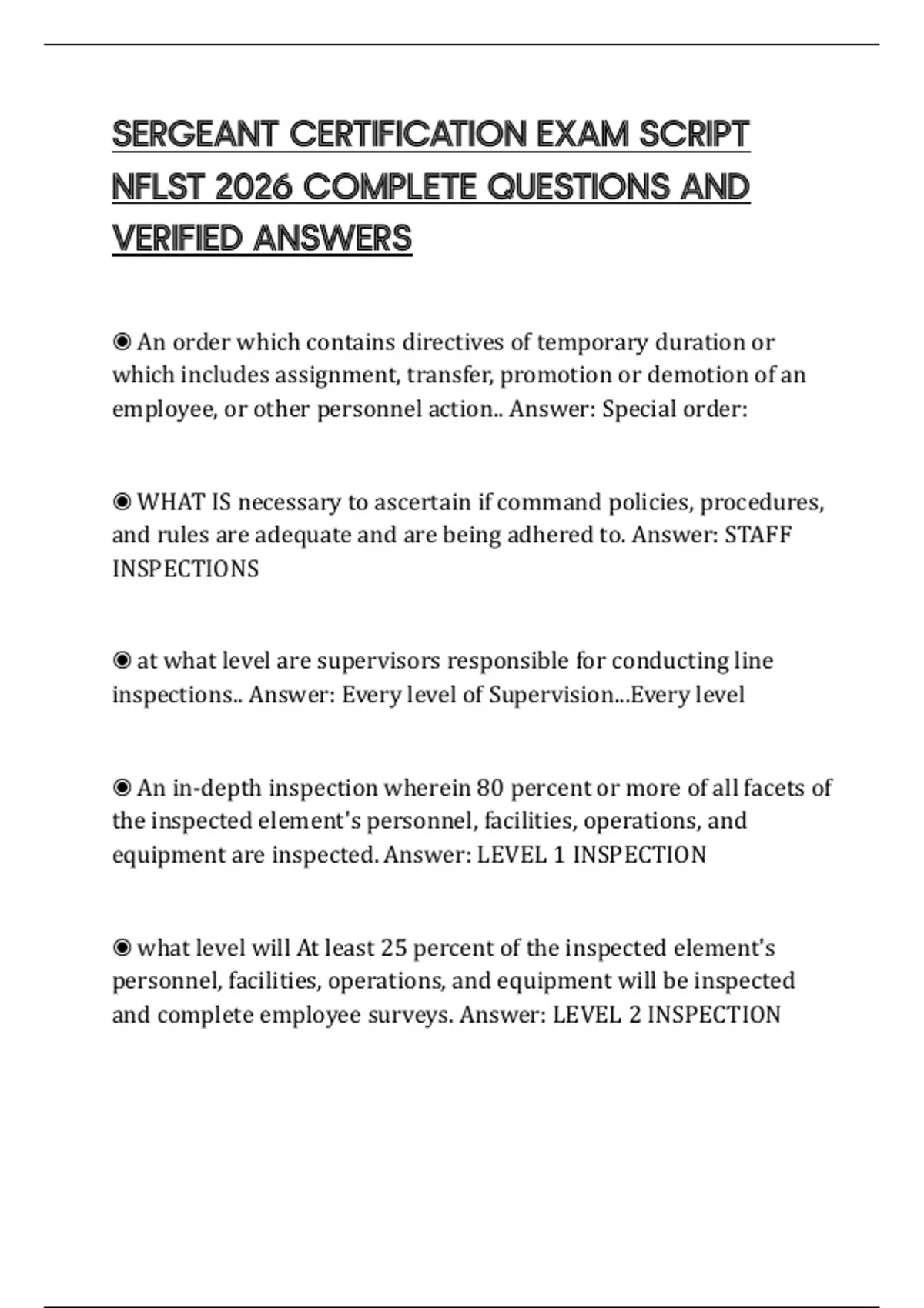 SERGEANT CERTIFICATION EXAM SCRIPT NFLST 2026 COMPLETE QUESTIONS AND VERIFIED ANSWERS