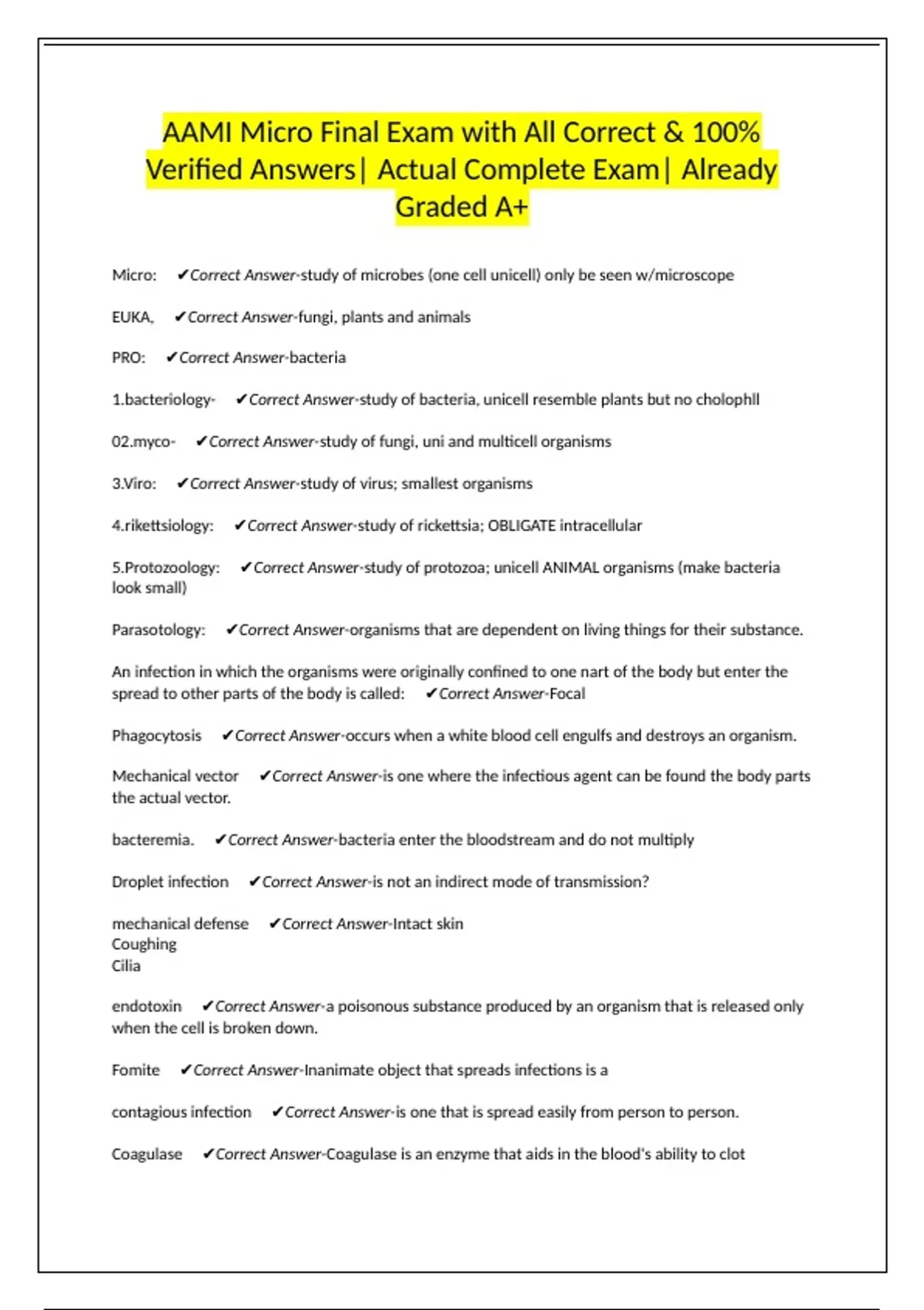 AAMI Micro Final Exam with All Correct & 100% Verified Answers| Actual Complete Exam| Already Graded A+