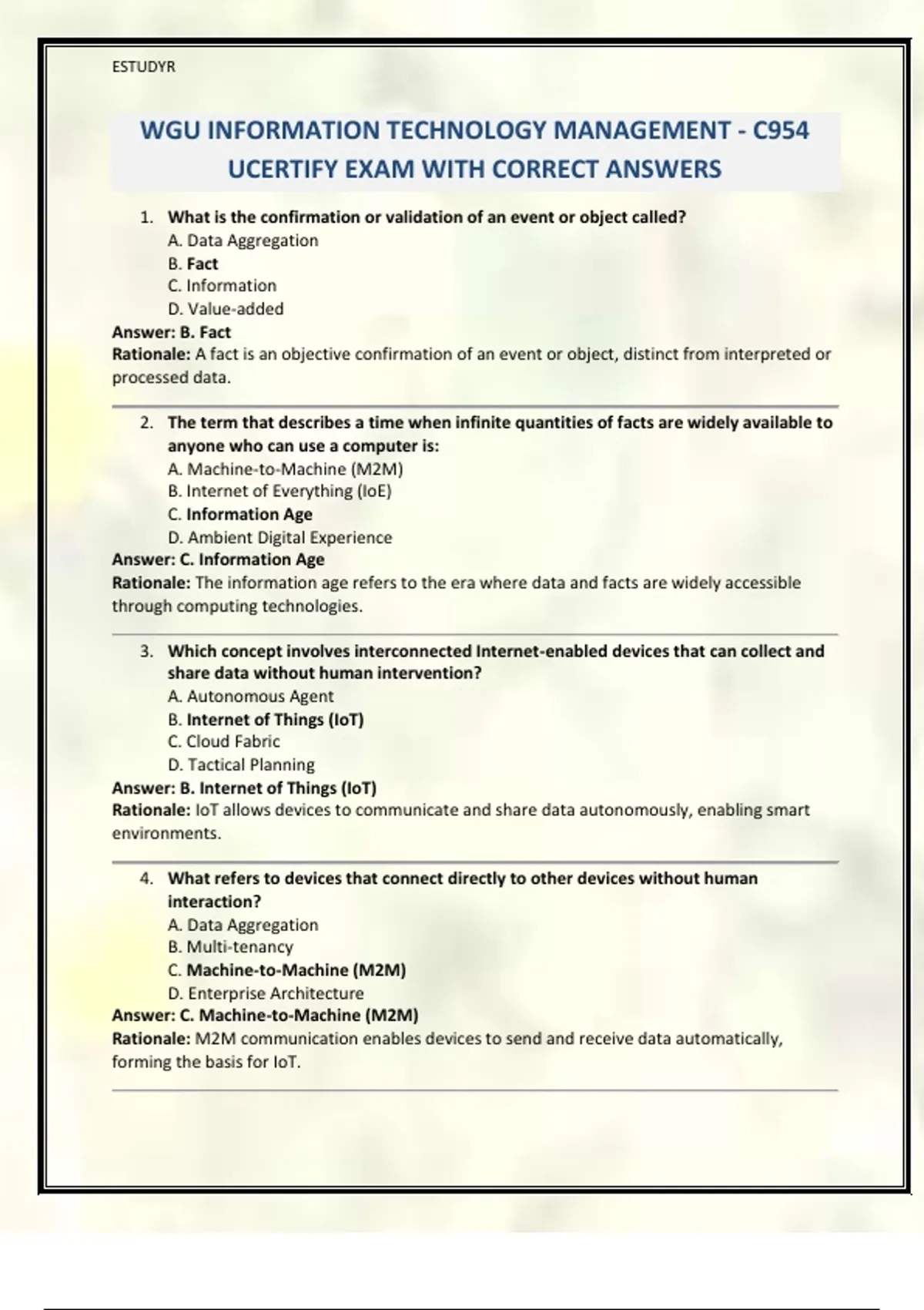 WGU INFORMATION TECHNOLOGY MANAGEMENT - C954 UCERTIFY EXAM WITH CORRECT ANSWERS