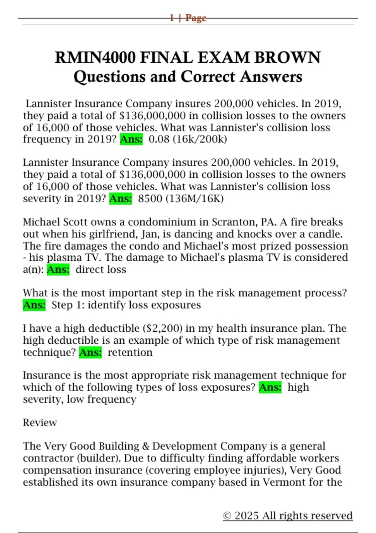 RMIN4000 FINAL EXAM BROWN Questions and Correct AnswersRMIN4000 FINAL EXAM BROWN Questions and Correct Answers