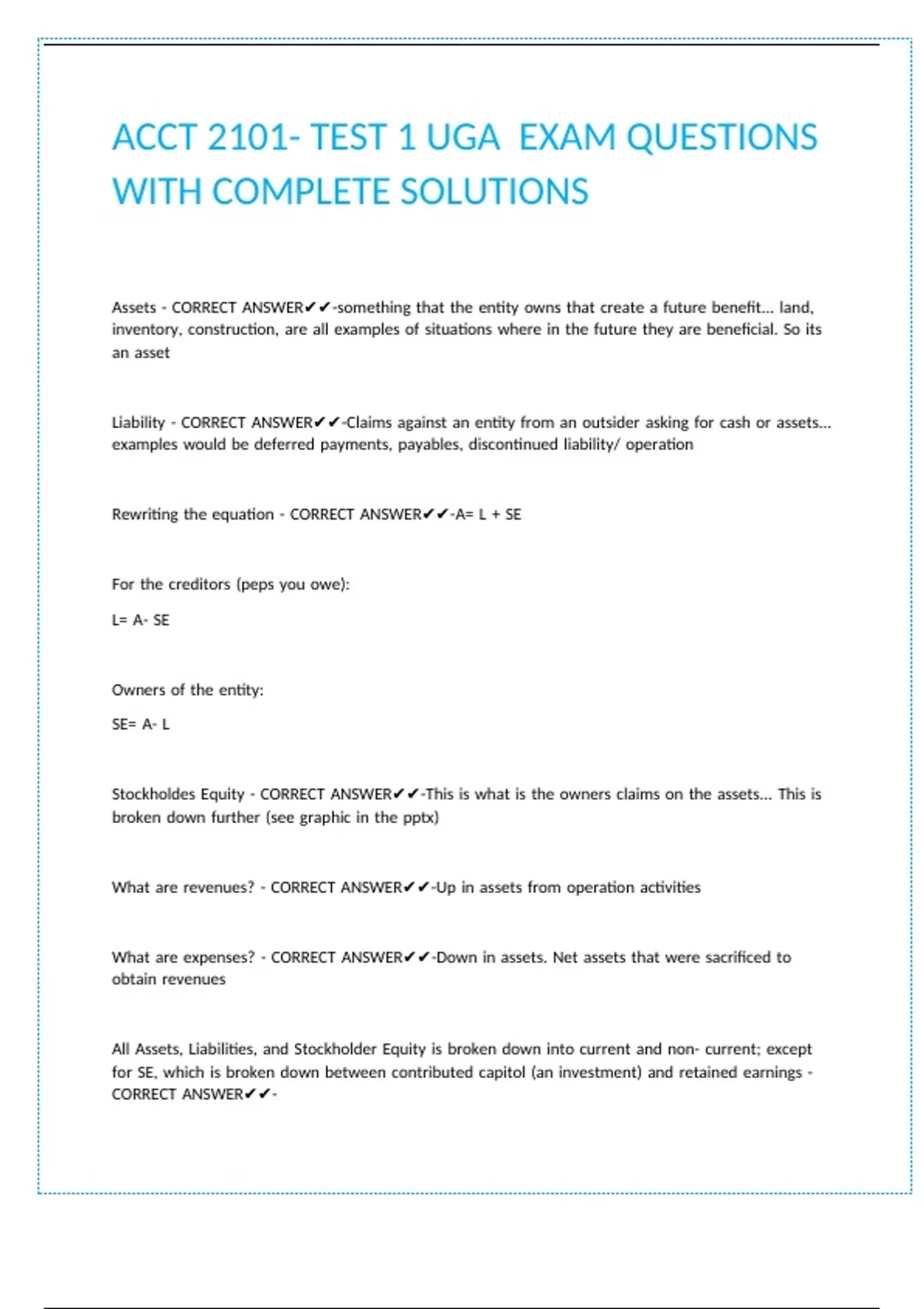 ACCT 2101- TEST 1 UGA EXAM QUESTIONS WITH COMPLETE SOLUTIONS.