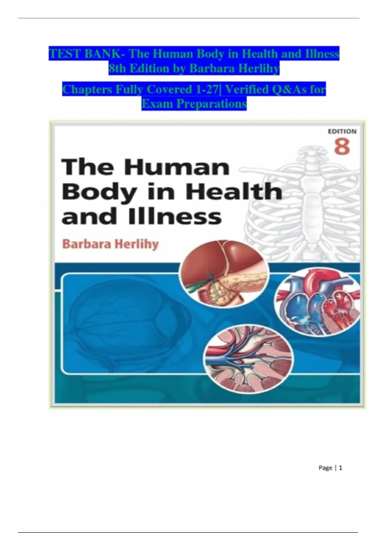 Test Bank for The Human Body in Health and Illness – 8th Edition by Barbara Herlihy. Questions and verified answers, graded A+.