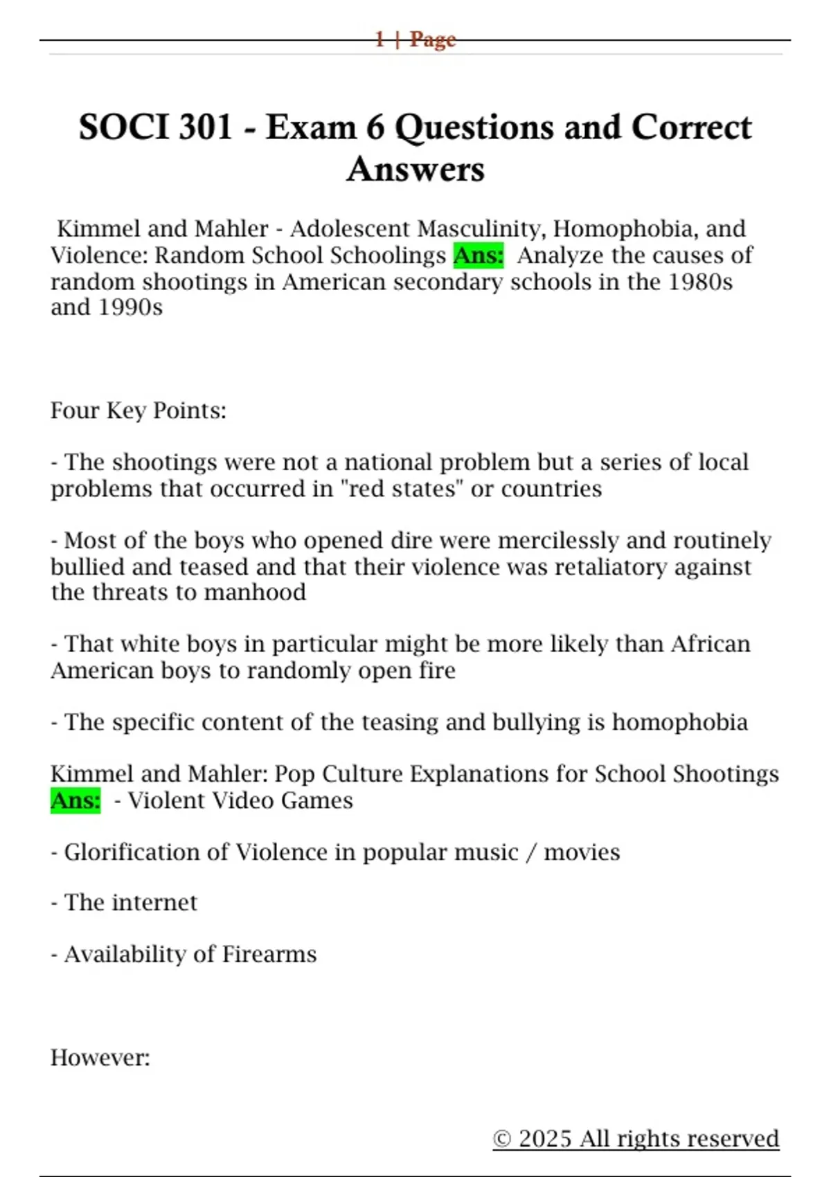Kimmel and Mahler - Commonality of School Shootings Ans: