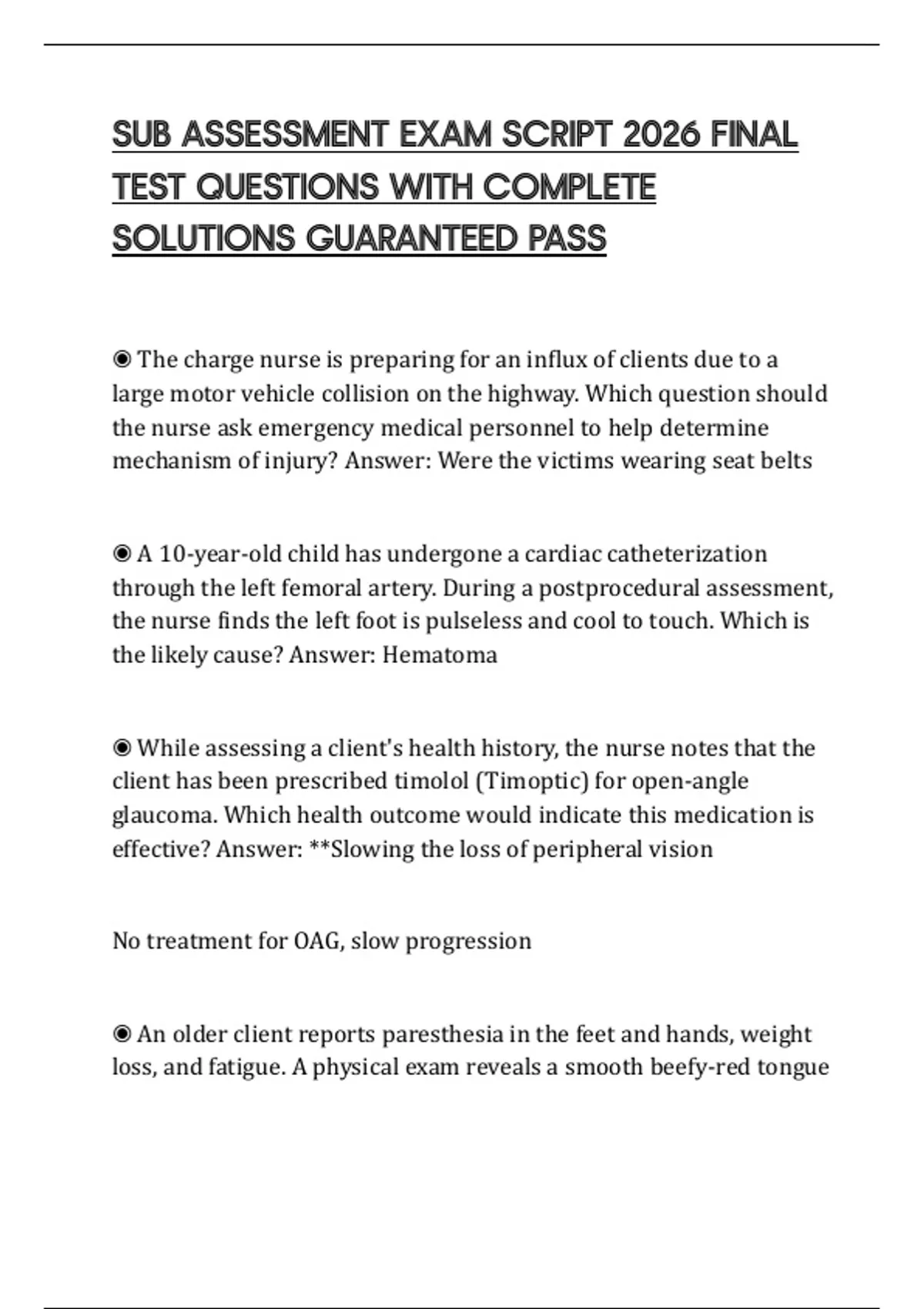 TEST QUESTIONS WITH COMPLETE