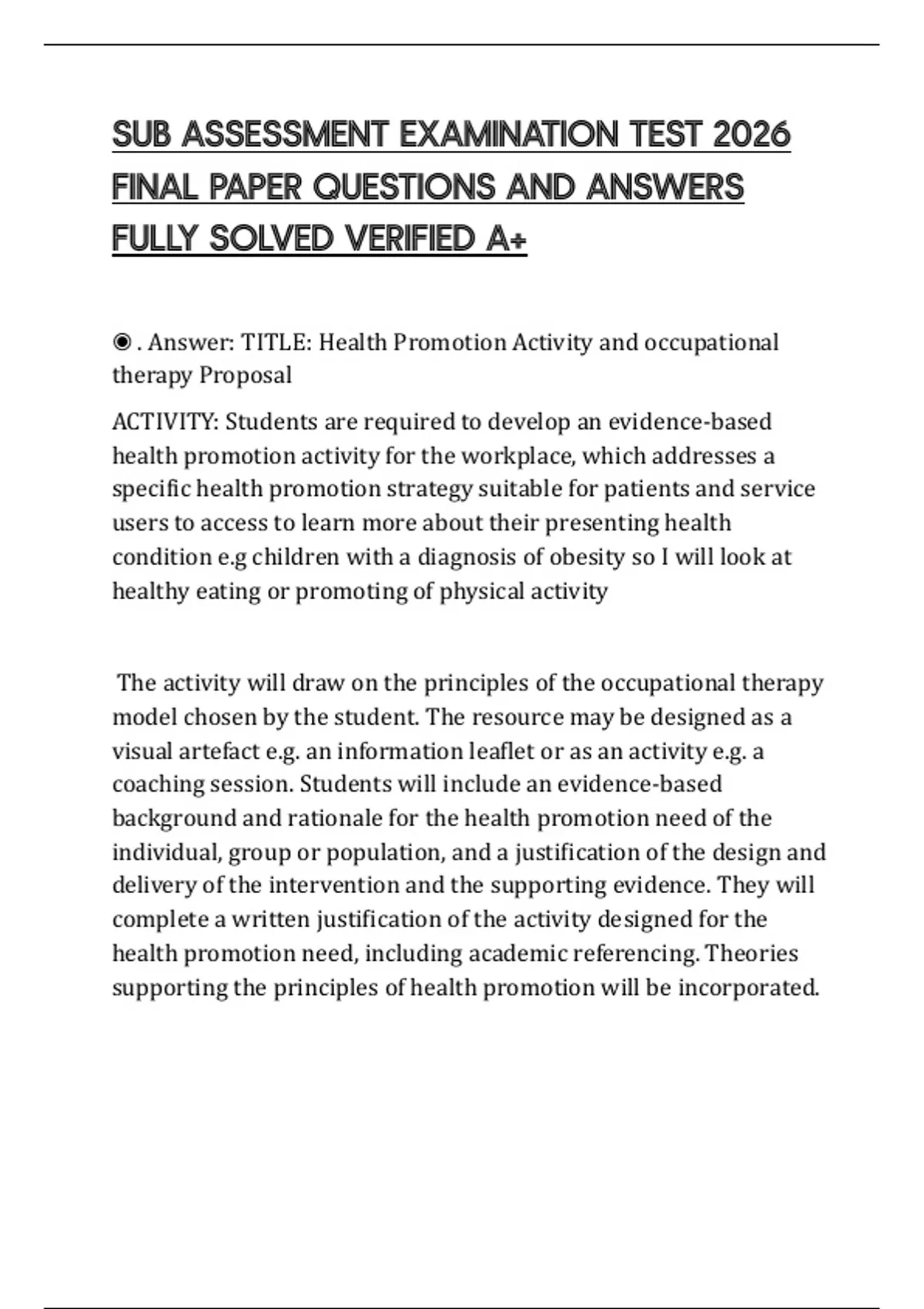 ◉ . Answer: TITLE: Health Promotion Activity and occupational