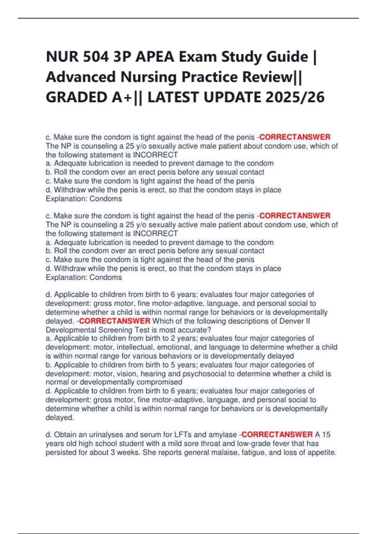 NUR 504 3P APEA Exam Study Guide | Advanced Nursing Practice Review|| GRADED A+|| LATEST UPDATE 2025/26