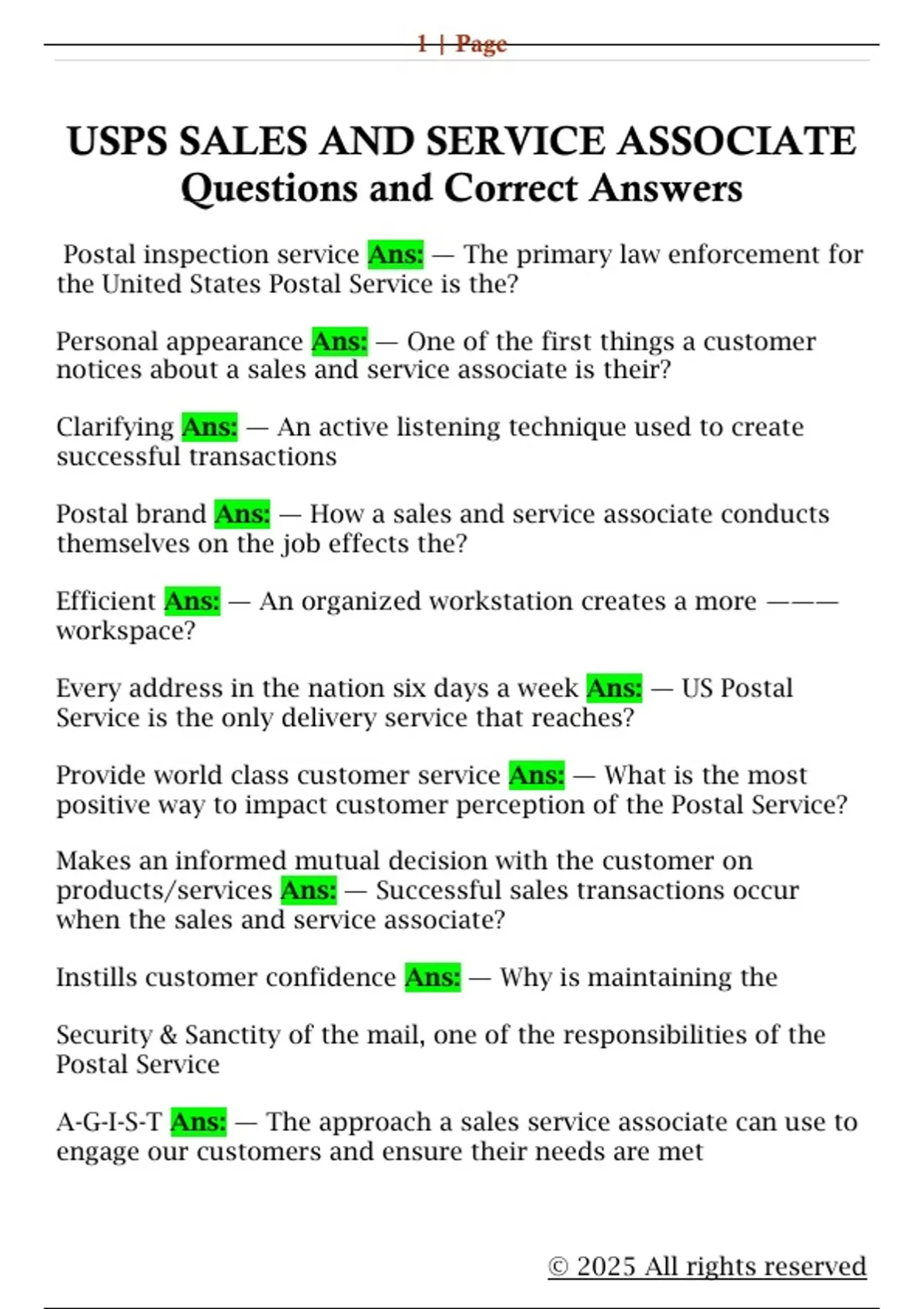 USPS SALES AND SERVICE ASSOCIATE Questions and Correct AnswersUSPS SALES AND SERVICE ASSOCIATE Questions and Correct AnswersUSPS SALES AND SERVICE ASSOCIATE Questions and Correct AnswersUSPS SALES AND SERVICE ASSOCIATE Questions and Correct AnswersUSPS SALES AND SERVICE ASSOCIATE Questions and Correct AnswersUSPS SALES AND SERVICE ASSOCIATE Questions and Correct AnswersUSPS SALES AND SERVICE ASSOCIATE Questions and Correct Answers