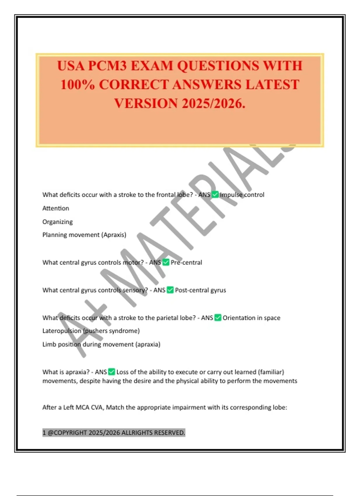 USA PCM3 EXAM QUESTIONS WITH 100% CORRECT ANSWERS LATEST VERSION 2025/2026.