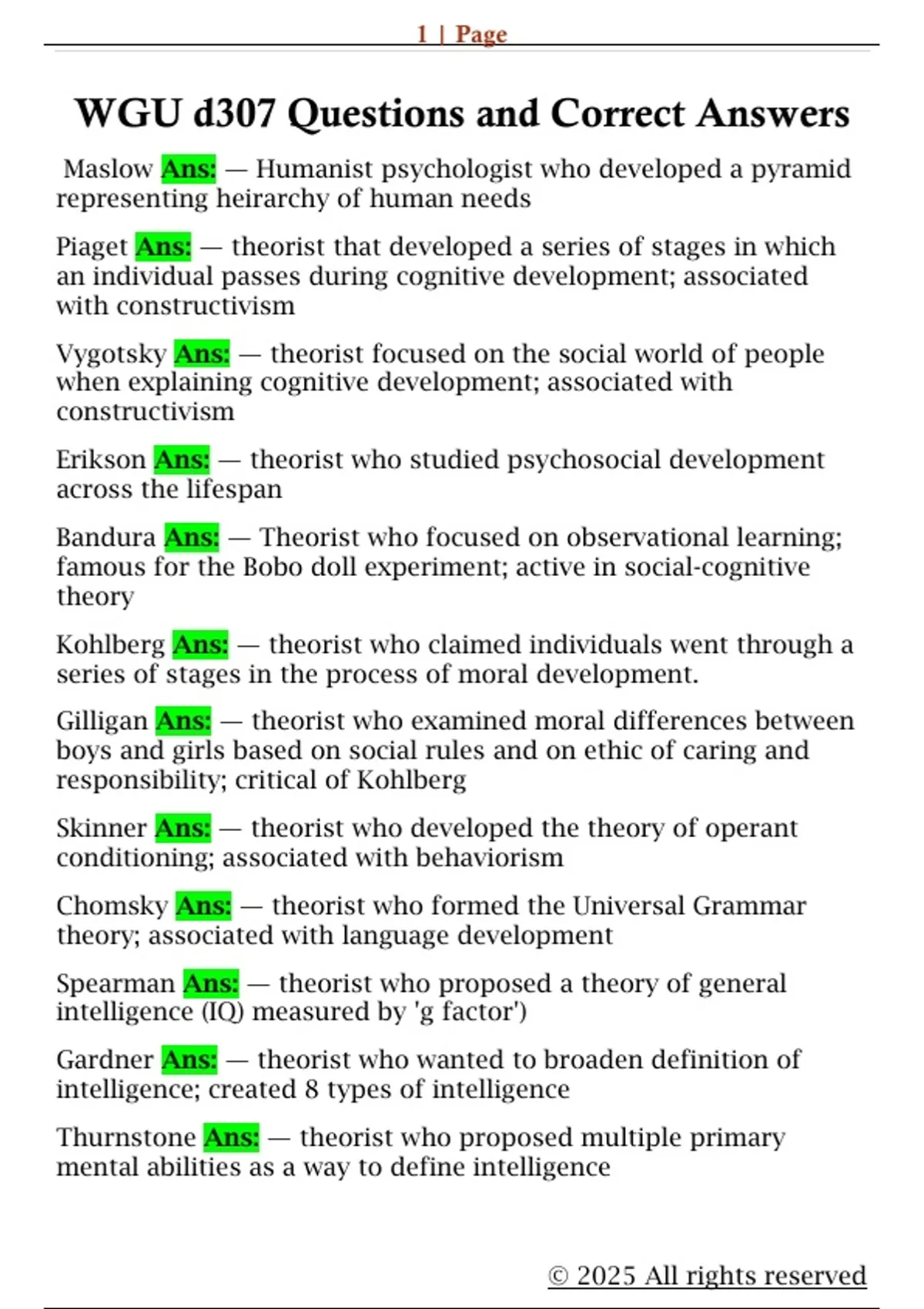 Kohlberg Ans: — theorist who claimed individuals went through a