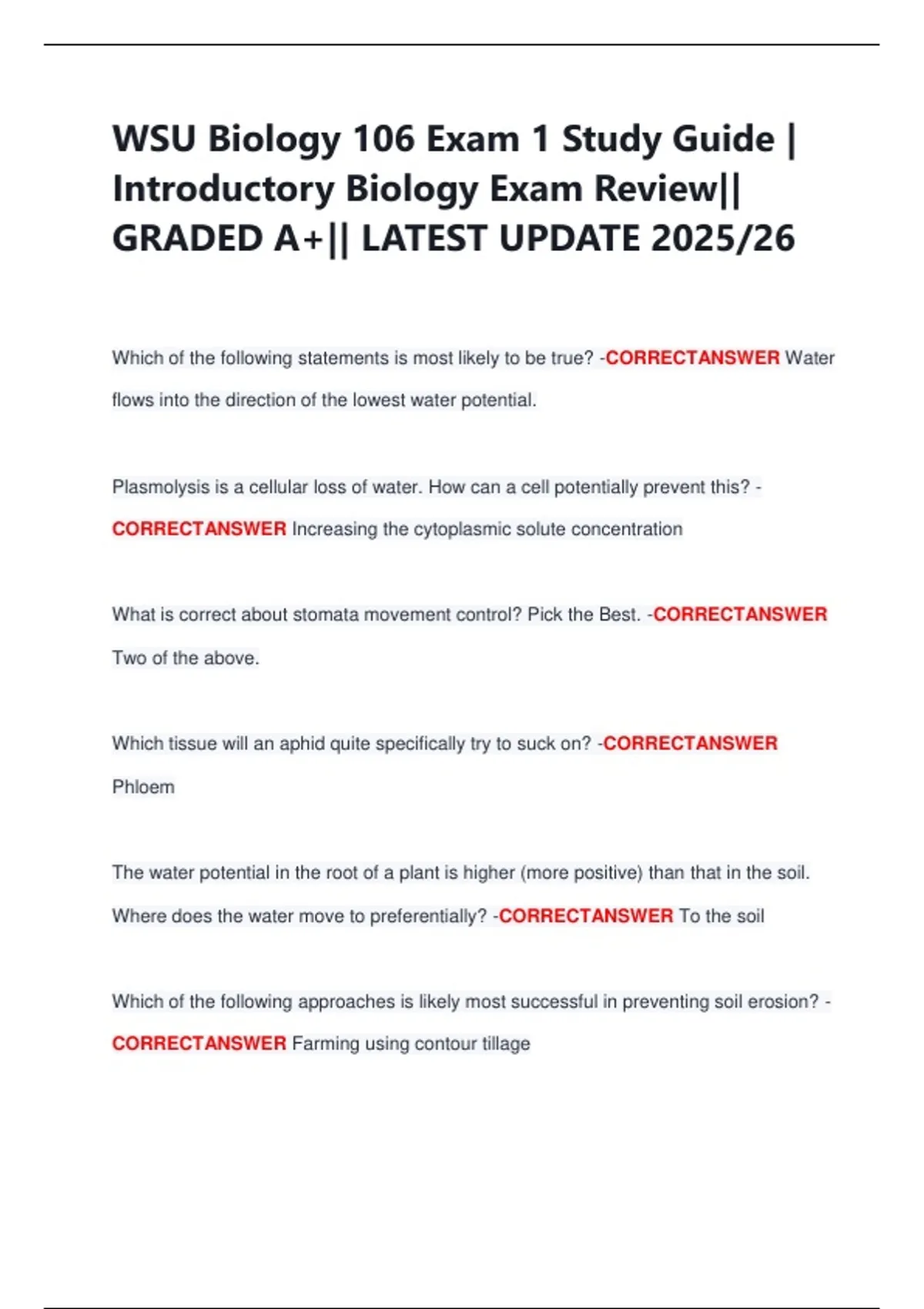 WSU Biology 106 Exam 1 Study Guide |