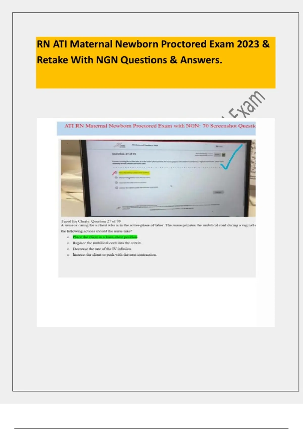 RN ATI Maternal Newborn Proctored Exam 2023 & Retake With NGN Questions & Answers.