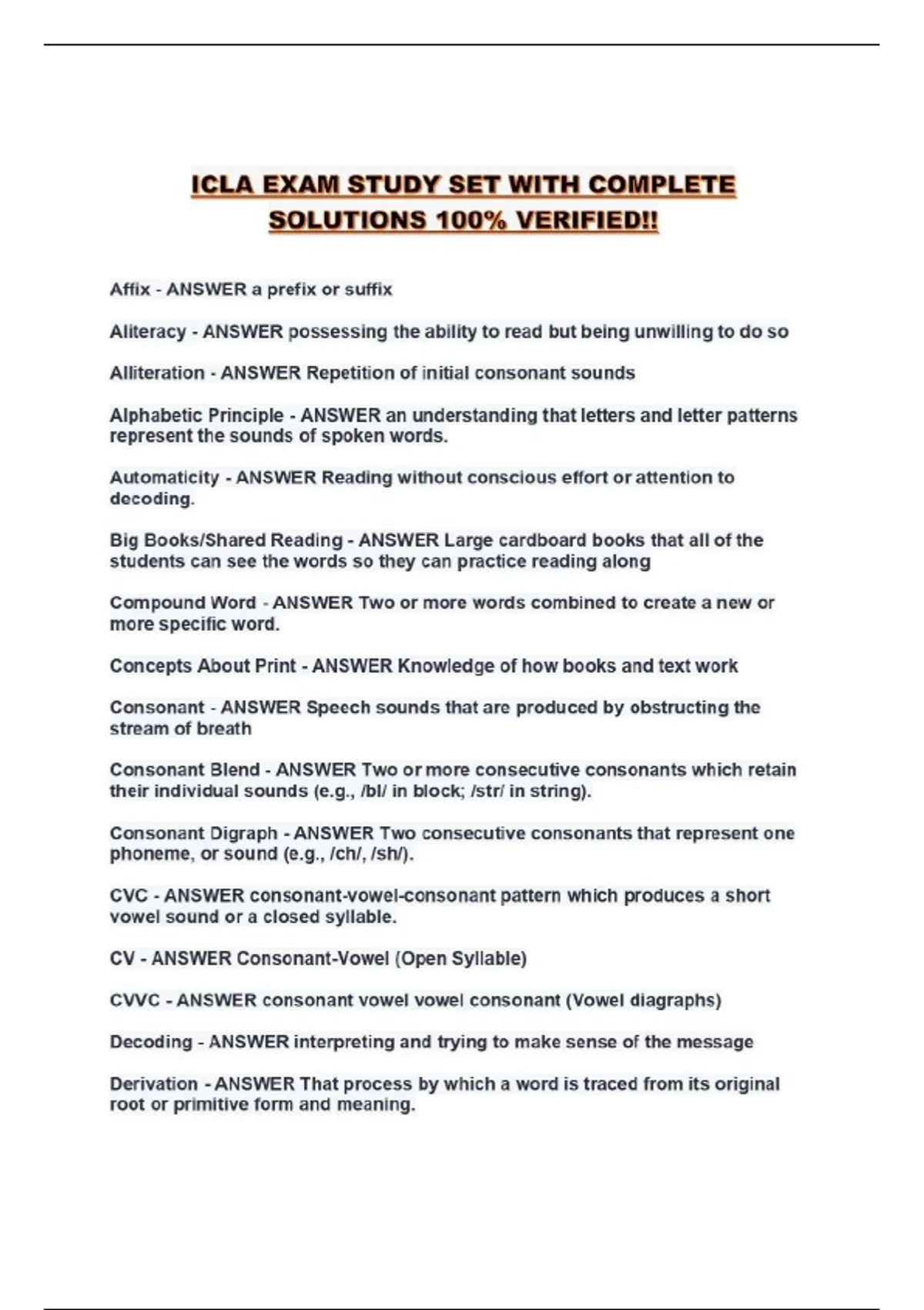 ICLA EXAM STUDY SET WITH COMPLETE SOLUTIONS 100% VERIFIED!!...
